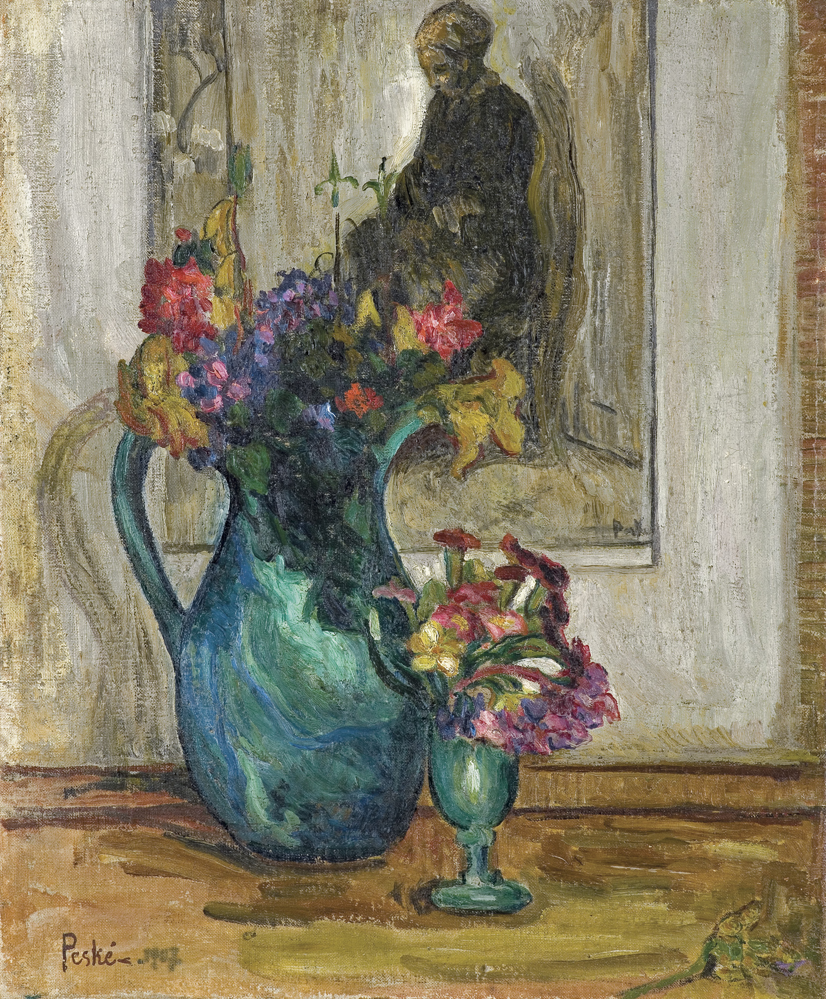 Jean Peské (Gołta w Ukrainie 1870 - La Mains 1949) - uczył się początkowo w Szkole Malarstwa Nikołaja Muraszki w Kijowie, a następnie w latach 1886-1889 w Szkole Sztuk Pięknych w Odessie. W 1890 został uczniem Wojciecha Gersona w Warszawie. W 1891 wyjechał do Paryża, gdzie kontynuował studia w Académie Julian pod kierunkiem Jean-Paula Laurensa i Benjamina Constanta. Osiadł tam na stałe, wrastając zarówno w środowisko Polonii paryskiej – kontaktował się m.in. z Marią Skłodowską-Curie i Gabrielą Zapolską – jak też nawiązując znajomości, częściowo za pośrednictwem tej drugiej, ze środowiskiem malarzy i grafików, jak Paul Signac, Paul Sérusier, Félix Fénéon, Henri de Toulouse-Lautrec, Camille Pissarro. Od 1894 uczestniczył w Salonach: Niezależnych, Société Nationale des Beaux-Arts, Tuileryjskim, w 1901 miał pierwszą wystawę indywidualną w redakcji „La Revue Blanche”. Uczestnicząc intensywnie w życiu artystycznym Paryża, utrzymywał też kontakty z krajem, gdzie wystawiał w Zachęcie w Warszawie (1892) oraz w Towarzystwie Przyjaciół Sztuk Pięknych we Lwowie (1900) i Krakowie (1910), uczestniczył też w wystawie sztuki polskiej w Grand Palais w Paryżu w 1921. Pracował wiele na plenerach na południu Francji – w Bormes, gdzie do 1926 miał pracownię i w Collioure, gdzie utworzył muzeum współczesnej sztuki francuskiej (obecnie jego imienia i z kolekcją jego prac). Malarstwo artysty ukształtowało się w kręgu oddziaływania postimpresjonistów i nabistów, a także secesyjnej stylizacji. Chętnie podejmował temat macierzyństwa, malował martwe natury, sceny rodzajowe i pejzaże z południa Francji.