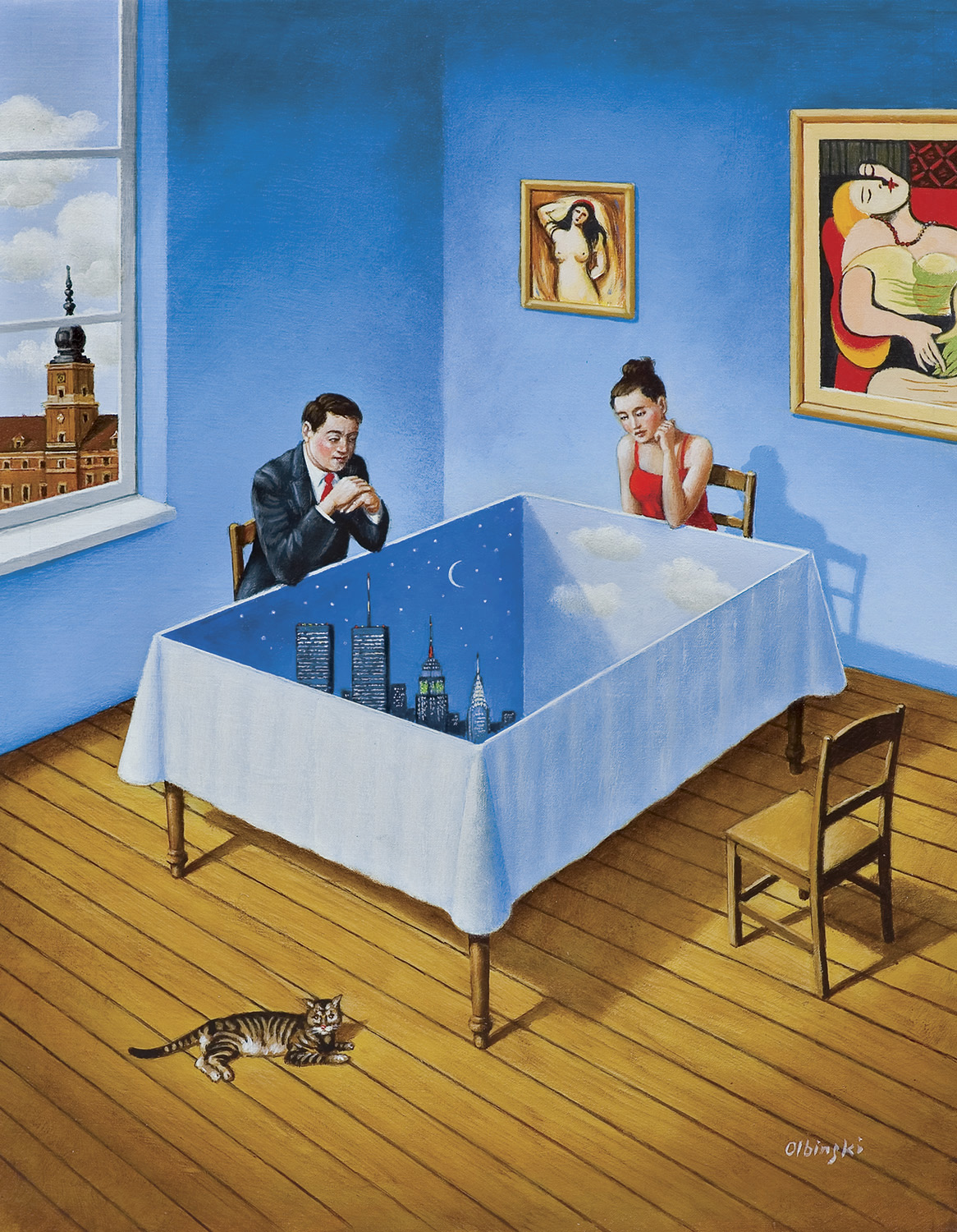Rafał Olbiński (Kielce 1945, mieszka w Warszawie) - studiował na Wydziale Architektury Politechniki Warszawskiej, gdzie uzyskał dyplom w 1969. Od lat studenckich zajmował się grafiką użytkową i plakatem. Uczestniczył w wielu polskich i międzynarodowych wystawach związanych z grafiką i plakatem. Był autorem oprawy graficznej magazynu "Jazz Forum". W 1981 wyjechał z Polski i osiadł w Nowym Jorku gdzie kantynuował twórczość plakatową, a także zajął się malarstwem, rysunkiem prasowym i ilustracją. Debiutował w 1981 okładką do pisma "Psychology Today". Publikował w czasopismach takich jak "Newsweek", "Time", "Business Week", "The New York Times", "Atlantic Monthly", "Playboy", "New Yorker", "Omni". Od 1985 wykładał w School of Visual Arts w Nowym Jorku. Od wielu lat projektuje też plakaty dla New York City Opera. W 1994 otrzymał paryską nagrodę za najbardziej pamiętny plakat roku (International Oscar for the World's Most Memorable Poster "Prix Savignac 1994"), w 1995 wygrał konkurs na plakat "Nowy Jork – stolica świata". Jest reprezentowany w zbiorach takich, jak Museum of Modern Art w Nowym Jorku, Library of Congress Print Collection w Waszyngtonie, Muzeum Plakatu w Wilanowie oraz w wielu innych publicznych i prywatnych kolekcjach na całym świecie. Od lat 90. często bywa i wystawia w Polsce, obecnie mieszka w Warszwie. Jego prace odznaczają się specyficznym typem obrazowania, który zaskarbił mu opinię surrealisty. Dzięki zaskakującym zestawieniom elementów obrazu, łączeniu różnych planów i niezwykłemu skalowaniu, a także zawsze obecnej w pracach Olbińskiego narracji, jego dzieła cieszą się niesłabnącym zainteresowaniem i popularnością.
