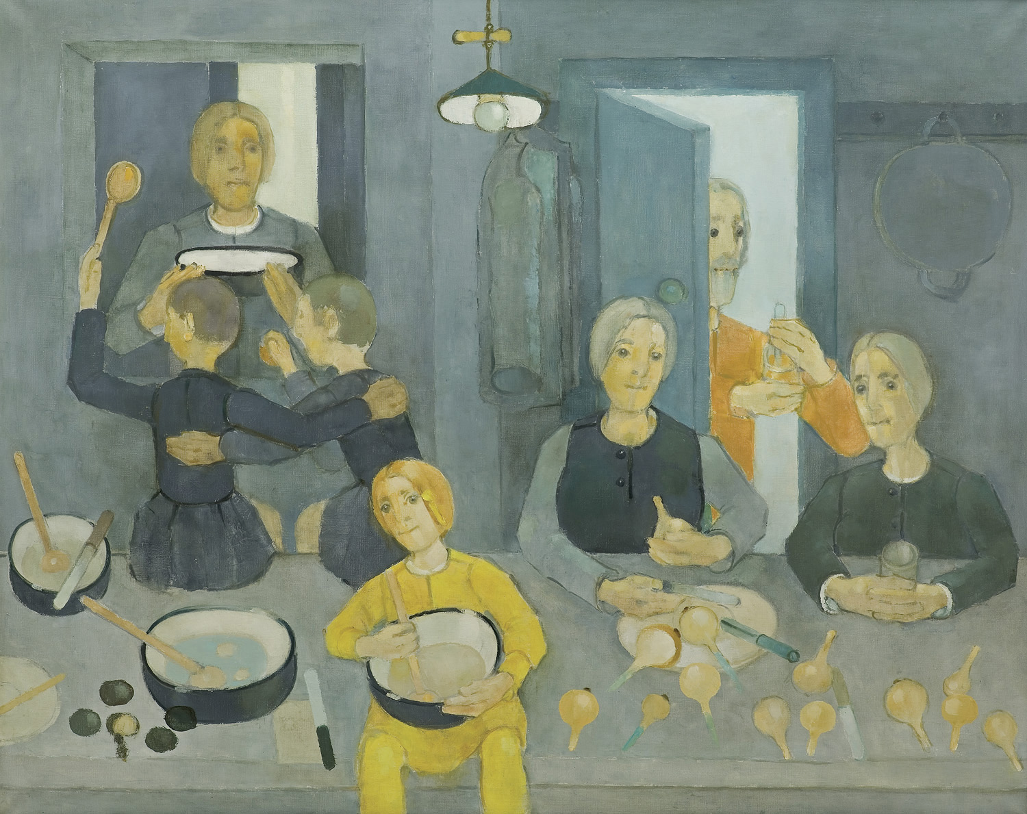 Kiejstut Bereźnicki (Poznań 1935 - mieszka w Sopocie) studiował w Państwowej Wyższej Szkole Sztuk Plastycznych w Gdańsku, gdzie w 1958 uzyskał dyplom w pracowni prof. Stanisława Teisseyre. Od 1960 pracuje w tej uczelni, od 1982 prowadząc własną pracownię malarstwa. W latach 1981-1984 pełnił funkcję prorektora. Od 1984 jest profesorem. Uczestniczy w wystawach od 1959, osiągając liczne sukcesy, jak: I nagroda na Ogólnopolskiej Wystawie Młodego Malarstwa, Sopot 1965, złoty medal na VI Festiwalu Sztuk Pięknych, Warszawa 1968, nagroda na III Międzynarodowym Triennale Malarstwa Realistycznego, Sofia 1979. Uczestniczył ponadto m. in. w III Biennale Młodych, Paryż 1963 i VIII Biennale w Sao Paulo 1965, miał liczne wystawy indywidualne w kraju i za granicą. Wcześnie wypracował indywidualny styl, który wyróżnia jego malarstwo jako odrębne zjawisko w polskiej sztuce współczesnej. Odwołuje się do realizmu, co więcej, do sztuki dawnej o lokalnym, gdańskim rodowodzie i wyrazie. Tworzy archaizowane w tym nastroju martwe natury, uczty, sceny mitologiczne i alegorie, ale przede wszystkim hieratyczne mieszczańskie portrety, często podwójne i zbiorowe. Początkowo rozgrywający swe kompozycje w niemal monochromatycznych gamach barwnych, w latach 80. rozjaśnił i urozmaicił paletę, zwłaszcza w kompozycjach religijnych i serii "karnawałów". Podobnie w latach 90. powstała seria różowo-brązowych martwych natur.