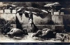 Wilhelm Kotarbiński (Nieborów 1849 – Kijów 1921) kształcił się w warszawskiej Klasie Rysunkowej pod kierunkiem Rafała Hadziewicza (lata1867-1871), a od roku 1872 także w Akademii Św. Łukasza w Rzymie. Po ukończeniu studiów otworzył w Rzymie własną pracownię, w której udzielał także lekcji rysunków; jego uczennicą była m.in. Maria Baszkircew. Do kraju wrócił w 1888 i odtąd przebywał głównie we własnym majątku Kalsk (lub Kulsk) na Białorusi. Stamtąd wielokrotnie wyjeżdżał do Kijowa, gdzie miał pracownię w hotelu Praga, uczestniczył w wystawach kijowskiego Tow. Artystycznego, a w 1893 był współzałożycielem Tow. Malarzy Kijowskich. Wraz z P. Swiedomskim, M. Niestierowem i M. Wrublem pracował przy dekoracji freskami kijowskiego soboru Św. Włodzimierza (ukończone 1894-1895). Był także autorem dekoracyjnych plafonów i malowideł ściennych m.in. w domu M. Tereszczenki i w pałacu B. Chanenki w Kijowie oraz w salonach pałaców w Petersburgu i Moskwie. Malował przede wszystkim kompozycje o tematach biblijnych bądź antycznych – z życia starożytnego Wschodu, Grecji i Rzymu; tworzył też pejzaże oraz sceny fantastyczne i symboliczne. Jego obrazy wyróżniają się wyrafinowaną kolorystyką, swobodną techniką, swoistą stylizacją form i specyficznym, często tajemniczym nastrojem. Największa popularność artysty przypada na dziewięćdziesiąte lata XIX wieku, kiedy – ze względu na „antyczną” tematykę swych obrazów – bywał porównywany z Siemiradzkim. Dzieła Kotarbińskiego rzadko pojawiają się na rynku sztuki; większość jego prac zaginęła bądź uległa zniszczeniu w czasie pierwszej wojny światowej i rewolucji bolszewickiej.