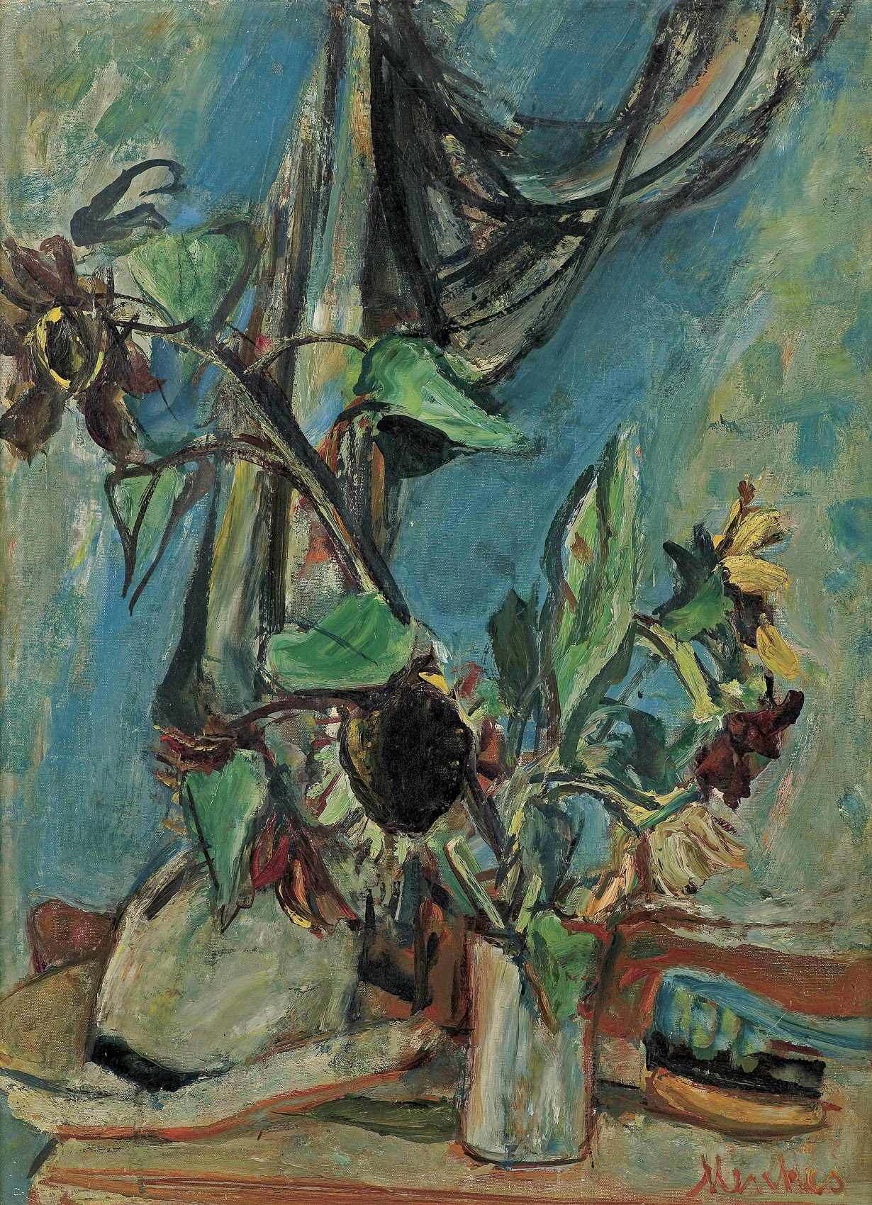 Zygmunt Menkes (Lwów 1896 - Riverdale, Nowy Jork 1986) naukę malarstwa rozpoczął pod kierunkiem Kazimierza Sichulskiego w lwowskiej Szkole Przemysłu Artystycznego. Następnie, w latach 1919-1922 studiował w krakowskiej Akademii Sztuk Pięknych u Wojciecha Weissa. W roku 1922 wyjechał do Berlina, gdzie poznał Aleksandra Archipenkę i korzystał z jego wskazówek. Od roku 1923 stale przebywał w Paryżu. Związany ze środowiskiem artystów École de Paris, przyjaźnił się, m.in. z E. Zakiem i M. Chagallem. Uczestniczył w Salonach Jesiennych, Niezależnych i Tuileries, wystawiał w wielu galeriach paryskich. Często przyjeżdżał do kraju; był członkiem lwowskiego ugrupowania Nowa Generacja i krakowskiego Zrzeszenia Artystów Plastyków Zwornik, uczestniczył w wystawach we Lwowie i w Warszawie. Wiele podróżował, m.in. w 1928 był w Berlinie, a w 1935 w Hiszpanii (razem z A. Nachtem-Samborskim). W 1935 wyjechał do Nowego Jorku, gdzie osiadł na stałe i gdzie w 1936 miał wystawę indywidualną. Przez lata współpracował z tamtejszymi galeriami sztuki i wykładał w Art Students League. Malował portrety, akty, kompozycje figuralne, martwe natury i pejzaże, a po 1940 także obrazy nawiązujące do martyrologii Żydów. Jego malarstwo ulegało różnym przemianom stylistycznym. W okresie paryskim obrazy artysty bliskie były nurtom ekspresjonizmu i fowizmu. W okresie powojennym ograniczał kolorystykę, wprowadzał mocną linię konturu, bogatą fakturę, a z czasem także coraz wyraźniejszą geometryzację form.