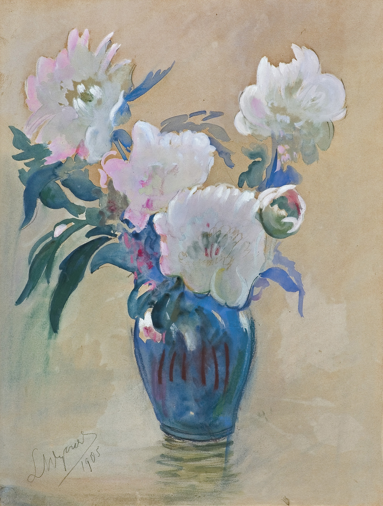 Leon Wyczółkowski (Huta Miastkowska k. Siedlec 1852 - Warszawa 1936) - malarz, grafik i pedagog, był jednym z najwybitniejszych artystów polskich tworzących na przełomie XIX i XX w. Studia artystyczne rozpoczął w warszawskiej Klasie Rysunkowej pod kierunkiem Wojciecha Gersona i Aleksandra Kamińskiego (1869-1873), następnie kontynuował je w monachijskiej Akademii Sztuk Pięknych u Aleksandra Wagnera (1875-1877), w Krakowie u Jana Matejki (1877/78) i podczas dwukrotnych wyjazdów do Paryża (1878 i 1889). Po studiach zamieszkał we Lwowie, później przeniósł się do Warszawy. Lata 1883-1893 spędził podróżując po Ukrainie i Podolu. W 1895 przeniósł się do Krakowa powołany na wykładowcę tamtejszej Szkoły Sztuk Pięknych. W latach następnych wiele podróżował – do Włoch, Francji, Hiszpanii, Holandii, Anglii. Należał do grona członków-założycieli Towarzystwa Artystów Polskich „Sztuka”. Wiele wystawiał tak w kraju, jak i za granicą. Lata 1929-1936 spędził w Poznaniu i Gościeradzu, dojeżdżając do Warszawy, gdzie (od 1934) prowadził katedrę grafiki w Akademii Sztuk Pięknych. Malował krajobrazy, portrety, sceny rodzajowe, martwe natury i kwiaty. Chętnie posługiwał się techniką pastelu i akwareli, był wybitnym grafikiem, zajmował się też rzeźbą.