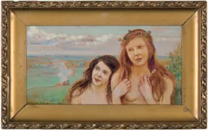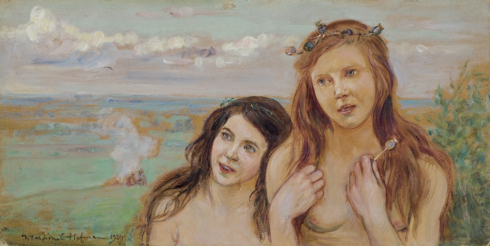 Wlastimil Hofman / Vlastimil Hofmann (Praga 1881 - Szklarska Poręba 1970) studiował w krakowskiej Szkole Sztuk Pięknych - początkowo pod kierunkiem Floriana Cynka, później także u Jana Stanisławskiego, Leona Wyczółkowskiego i Jacka Malczewskiego. W latach 1899-1902 uczył się jeszcze u Jeana Léona Gérôme’a w paryskiej École des Beaux-Arts. W czasie I wojny światowej przebywał w Pradze i w Paryżu; od 1920 stale mieszkał w Krakowie. Dużo wystawiał; należał do wielu stowarzyszeń twórczych - był współzałożycielem „Grupy Pięciu” (1905) i „Grupy Zero” (1908), członkiem Związku Artystów Czeskich „Manes”, a od 1911 członkiem Tow. Artystów Polskich „Sztuka”. W czasie II wojny światowej poprzez ZSRR i Turcję przedostał się do Jerozolimy, skąd w roku 1946 wrócił do Krakowa. Od roku 1947 stale mieszkał w Szklarskiej Porębie. Hofman malował przede wszystkim fantastyczno-symboliczne kompozycje o motywach ludowych oraz sceny rodzajowe, portrety i pejzaże. Jego obrazy mimo bliskich analogii i powiązań ze sztuką Malczewskiego odznaczają się zawsze indywidualnym charakterem, stylem i nastrojem.