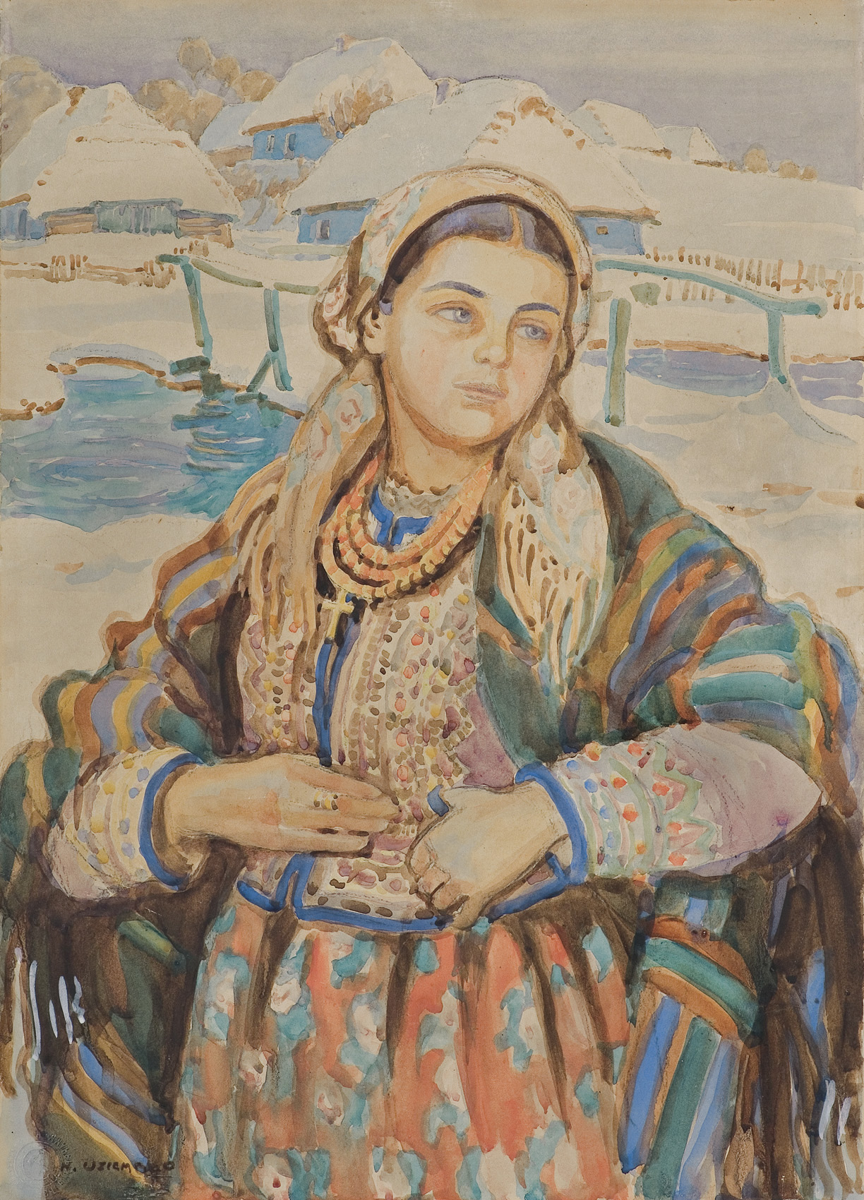 Henryk Uziembło kształcił się w Akademii Sztuk Pięknych w Krakowie u T.Axen-towicza i S.Wyspiańskiego, a następnie w Akademii Sztuk Pięknych w Wiedniu, Paryżu, w Anglii i we Włoszech. Malował olejno i pastelami - sceny rodzajowe, portrety wiejskich dziewczyn, a pod wpływem J.Stanisławskiego także pejzaże. Zajmował się sztuką dekoracyjną, projektował witraże i mozaiki, uprawiał ścienne malarstwo dekoracyjne.