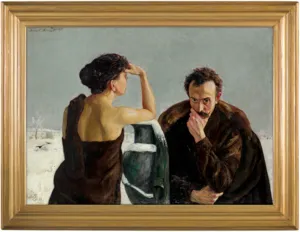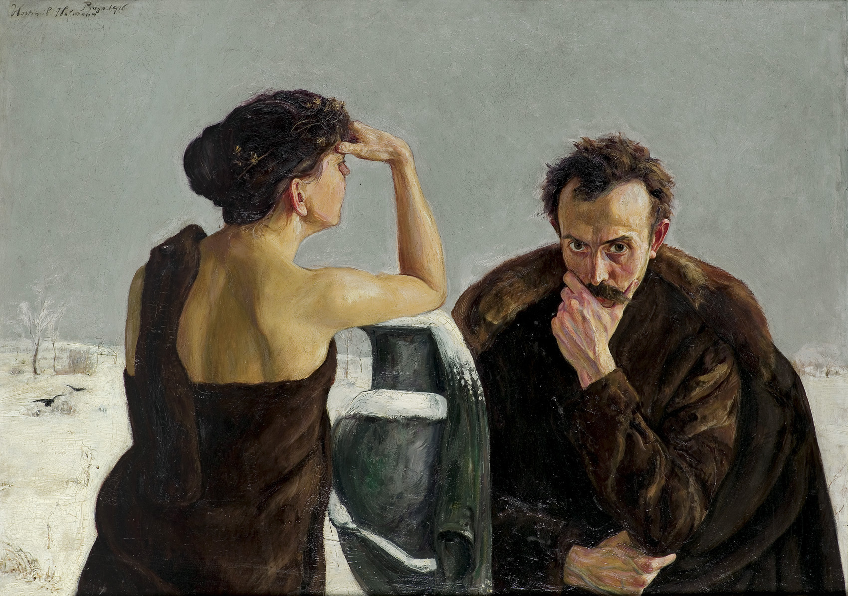Wlastimil Hofman / Vlastimil Hofmann (Praga 1881 - Szklarska Poręba 1970) studiował w krakowskiej Szkole Sztuk Pięknych - początkowo pod kierunkiem Floriana Cynka, później także u Jana Stanisławskiego, Leona Wyczółkowskiego i Jacka Malczewskiego. W latach 1899-1902 uczył się jeszcze u Jeana Léona Gérôme’a w paryskiej École des Beaux-Arts. W czasie I wojny światowej przebywał w Pradze i w Paryżu; od 1920 stale mieszkał w Krakowie. Dużo wystawiał; należał do wielu stowarzyszeń twórczych - był współzałożycielem „Grupy Pięciu” (1905) i „Grupy Zero” (1908), członkiem Związku Artystów Czeskich „Manes”, a od 1911 członkiem Tow. Artystów Polskich „Sztuka”. W czasie II wojny światowej poprzez ZSRR i Turcję przedostał się do Jerozolimy, skąd w roku 1946 wrócił do Krakowa. Od roku 1947 stale mieszkał w Szklarskiej Porębie. Hofman malował przede wszystkim fantastyczno-symboliczne kompozycje o motywach ludowych oraz sceny rodzajowe, portrety i pejzaże. Jego obrazy mimo bliskich analogii i powiązań ze sztuką Malczewskiego odznaczają się zawsze indywidualnym charakterem, stylem i nastrojem.