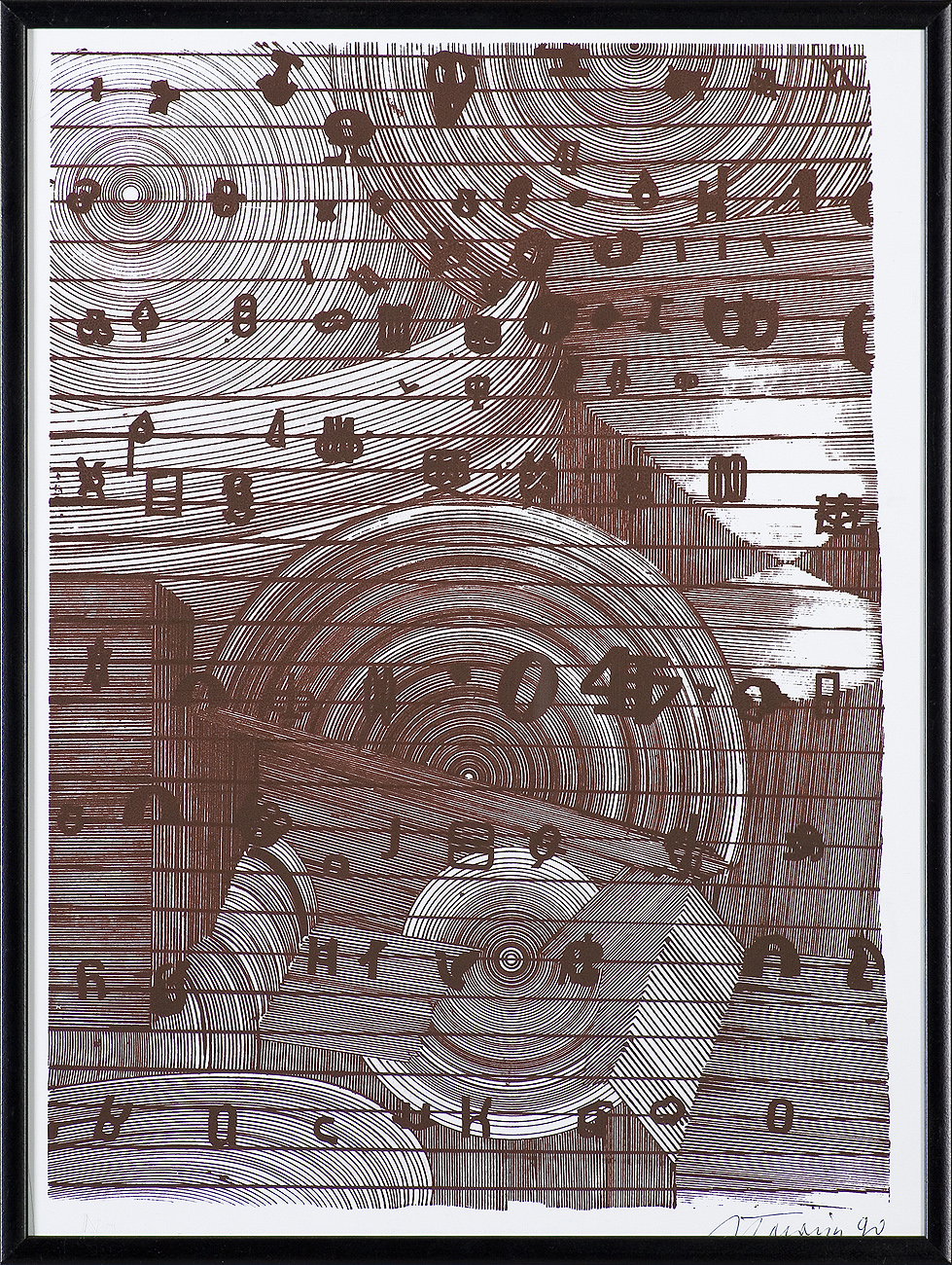Jan Tarasin (Kalisz 11 IX 1926 - Warszawa 8 VIII 2009) studiował malarstwo w ASP w Krakowie pod kierunkiem prof. Zbigniewa Pronaszki (1946-1951). Jeszcze jako student zadebiutował na I Wystawie Sztuki Nowoczesnej w Krakowie w 1948/49. W połowie lat 50. stworzył cykle litografii: „Nowa Huta i jej mieszkańcy“, 1954, „Dom“, 1955). W pierwszym przeciwstawił się oficjalnemu optymizmowi, w drugim, operując symboliką martwej natury, zawarł treści egzystencjalne i odnoszące do niedawnego dramatu wojny. Po 1956 zaczął malować obrazy niefiguratywne. Układy wyodrębnionych elementów (określanych jako „przedmioty“) umieszczane były przez artystę na płaszczyźnie (cykl „Wnętrze“, 1957) ), lub w aluzyjnej przestrzeni (cykle „Uczta“, 1957, „Brzeg“, 1962-1964, „Przedmioty policzone“, od 1968, „Antykwariat“, 1968). Zasada ta utrzymuje się w jego malarstwie w następnych latach, różnice między okresami twórczości dotyczą sposobu opracowania „przedmiotów“ i ich usytuowania w przestrzeni obrazu lub wobec tła. Od lat 70. „przedmioty“ zmieniają się w graficzne, zwykle czarne znaki na jasnych tłach (cykl „Kolekcja“, od 1971). Tła z kolei bywają iluzyjnie przestrzenne, zróżnicowane walorowo, miękkie. W latach 90. artysta wrócił do kolorystycznego, bardziej malarskiego rozwiązywania zarówno znaków, jak i teł, często ciemnych lub przenikających się z „przedmiotami“ (cykl „Wylęgarnia przedmiotów“, 1992). Tarasin od 1962 jest członkiem „Grupy Krakowskiej“. W 1963-67 uczył na Wydziale Architektury Wnętrz krakowskiej ASP. W 1967 przeniósł się do Warszawy, w 1974 podjął pracę pedagogiczną na Wydziale Malarstwa ASP w Warszawie. W 1987-90 był rektorem tej uczelni. W 1976 otrzymał Nagrodę Krytyki Artystycznej im. Cypriana Kamila Norwida, w 1984 Nagrodę im. Jana Cybisa.; Nagroda na MB Sztuki w San Marino 1965. Równolegle z malarstwem zajmował się rysunkiem i grafiką - do lat 60. litografią, od 1974 serigrafią. W 1974-1981 wydał 8 autorskich „Zeszytów“ z serigrafiami i własnymi tekstami. W 1995 w Galerii Zachęta odbyła się wystawa artysty, której towarzyszył monograficzny katalog.