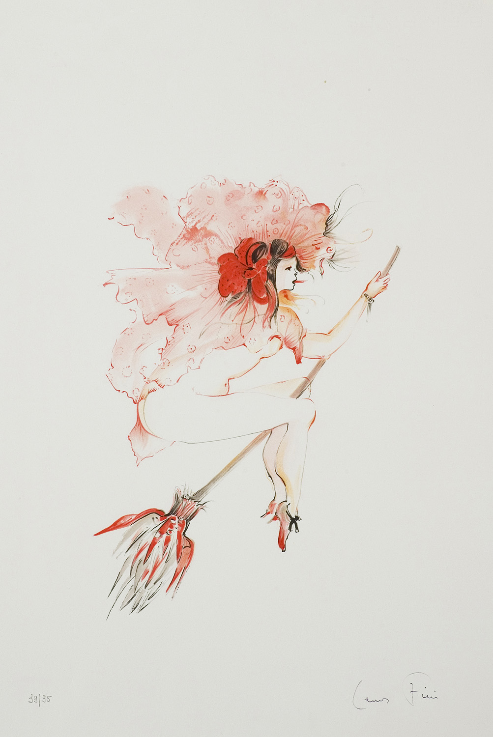 Leonor Fini, z pochodzenia Argentynka, niemal całe życie spędziła we Francji. Nie ukończyła żadnej szkoły artystycznej. W młodości fascynowała się twórczością prerafaelitów, Aubreya Beardsleya i Gustava Klimta. Jej pierwsza wystawa w Paryżu w 1935 zainteresowała surrealistów, poznała Paula Eluarda, Maxa Ernsta, René Magritte’a i Victora Braunera. Odtąd uczestniczyła w niektórych wystawach ruchu surrealistycznego. Interesowała ją biologiczna wegetacja, rytmy przyrody, przemijanie, dla których znajdowała symboliczny wyraz w pracach z późnych lat 40. Od początku aktualnym wątkiem jej twórczości, który od lat 60. zawładnął nią niemal niepodzielnie, był obsesyjny erotyzm, symbolizowany zwłaszcza przez zmysłowe koty-sfinksy. Kocie twarze i sylwetki miały też postaci malowanych przez nią kobiet, nimf, bohaterek mrocznych i wyrafinowanych dramatów. Ważnym wątkiem jej twórczości były portrety o zamglonym, sennym wyrazie. Była żoną Konstantego Jeleńskiego (1922-1987).