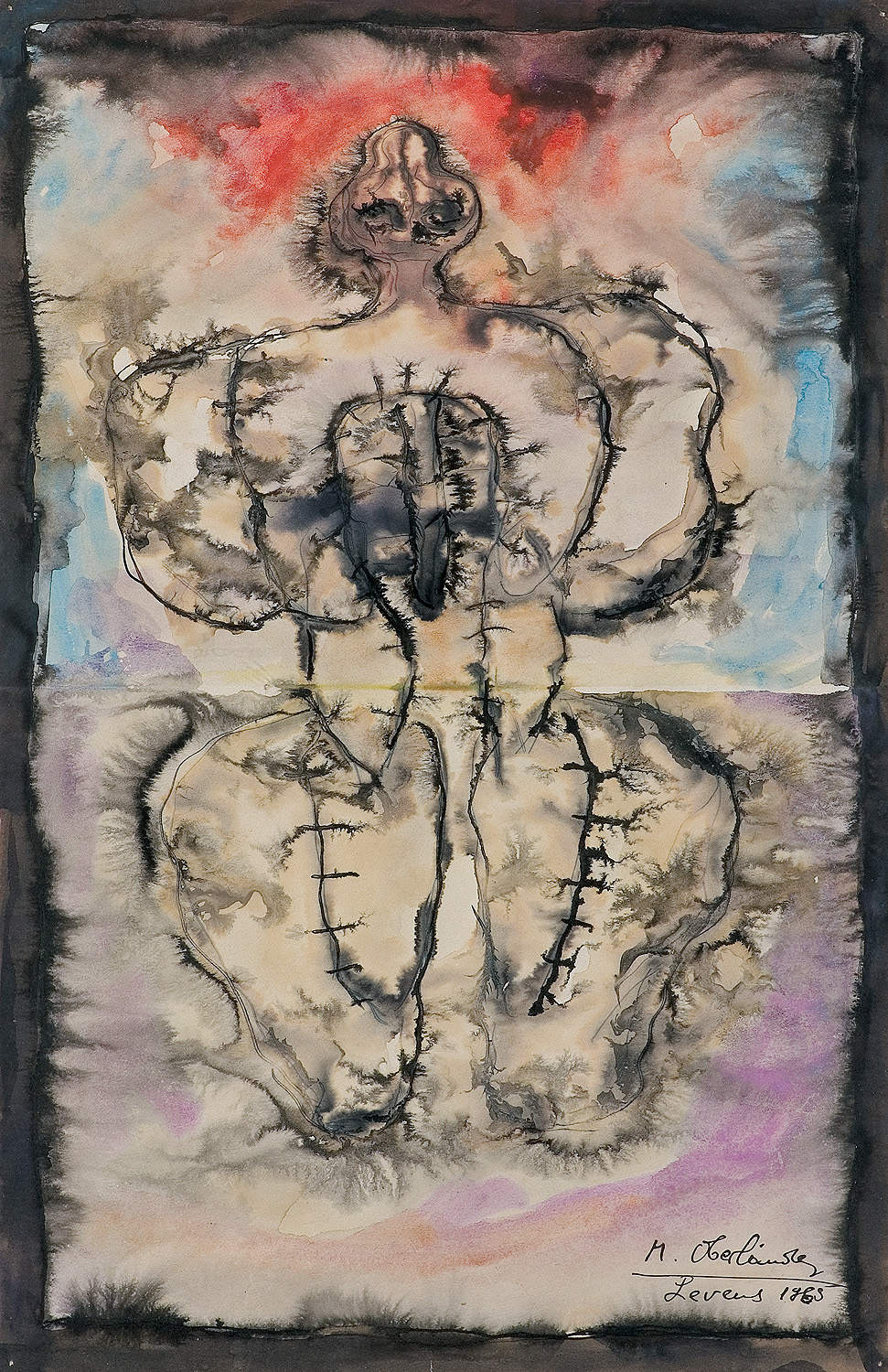 Marek Oberländer (Szczerzec k. Lwowa 1922 - Nicea 1978) w czasie wojny służył w Armii Czerwonej. W latach 1946-48 uczył się w Liceum Sztuk Plastycznych w Warszawie. Następnie w latach 1948-53 studiował w warszawskiej ASP. W 1955, wraz z Elżbietą Grabską, Janem Dziędziorą i Jackiem Sienickim był współorganizatorem Ogólnopolskiej Wystawy Młodej Plastyki, która pod nazwą „Arsenału” weszła do legendy polskiej sztuki współczesnej. Jednym z symboli postawy i stylistyki „arsenałowej” stał się pokazany na tej wystawie obraz Oberländera Napiętnowani. W latach 1956-61 artysta kierował galerią działającą pod patrontem tygodników kulturalno-społecznych, kolejno: „Po Prostu”, „Nowej Kultury” i „Współczesności”. W 1963 wyjechał do Szwecji, w 1964 osiadł we Francji. Mieszkał w Paryżu i Nicei, gdzie zmarł przedwcześnie na zawał serca. Wybór najlepszych prac ze swego dorobku artystycznego przekazał w 1977 Muzeum Narodowemu we Wrocławiu. W latach 50. tworzył kompozycje figuralne o tematyce historycznej i martyrologicznej, często poświęcone – jak wymienieni Napiętnowani – tragedii Holocaustu. Z czasem uprościł i zredukował formy, wzbogacając jednocześnie ich fakturę. Choć z reguły nie przekraczały progu abstrakcji, „Figury” Oberländera, zazwyczaj malowane i rysowane swobodnie rozlewającym się tuszem, stanowią oryginalną odmianę „czarnego”, poarsenałowego informelu polskiego. Po osiedleniu się we Francji artysta częściej malował olejem i gwaszem, wzbogacając i rozjaśniając paletę. Obok malarstwa uprawiał rysunek, grafikę warsztatową (litografia) i użytkową (ilustracja).