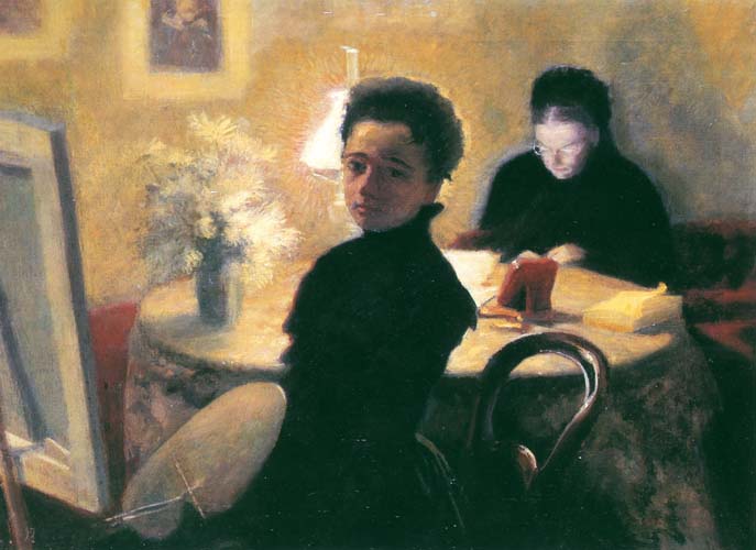 Przy lampie - autoportret