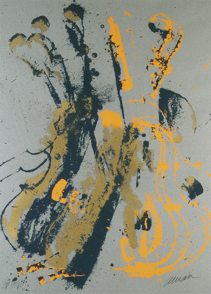 Arman (właściwie Pierre Armand Fernandez, Nicea 1928 - Nowy Jork 2005) znany malarz, grafik i rzeźbiarz, którego prace znajdują się w zbiorach wielu największych światowych muzeów sztuki współczesnej. Studiował w École des Arts Decoratifs w Nicei, w École des Beaux-Arts i École du Loure w Paryżu, wiele podróżował po Europie. W 1952-1953 był w Indochinach służąc w korpusie medycznym marynarki wojennej. W 1956 miał pierwszą indywidualną wystawę w Paryżu i odtąd wielokrotnie prezentował swe dzieła w licznych galeriach europejskich, w Stanach Zjednoczonych, w Japonii, Izraelu. Tworzy całe cykle obrazów, grafik, rzeźb. Początkowo stosował metody mechanicznego powielania motywu, używając m.in. stempli cyfr czy liter, później zajął się odciskami realnych przedmiotów zanurzanych w farbie. W 1959 zajął się tzw. „action sculpture” tworząc kompozycje plastyczne złożone z pospolitych przedmiotów - tzw. akumulacje, śmietniki, coleres.