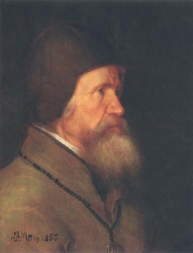 Jan Matejko (Kraków 1838 - Kraków 1893) - najwybitniejszy polski malarz historyczny; studia malarskie rozpoczął pod kierunkiem W. Łuszczkiewicza i W. K. Stattlera w krakowskiej Szkole Sztuk Pięknych (lata 1852-1858). Następnie uczył się w Akademii monachijskiej u H. Anschütza (1859) i przez dwa miesiące w Akademii wiedeńskiej u C. Rubena (1860). Po studiach mieszkał i pracował w Krakowie. W 1873 objął stanowisko dyrektora tamtejszej Szkoły Sztuk Pięknych, pełniąc tę funkcję aż do śmierci. Dużo podróżował - wielokrotnie wyjeżdżał do Paryża (w latach 1865-1880), Wiednia (1866-1888), w 1872 był w Konstantynopolu, a rok później w Pradze i Budapeszcie, odwiedzał również Włochy (1878-1879 i 1883). Był członkiem licznych akademii i towarzystw artystycznych m.in. Académie des Beaux-Arts (1873) i Instytutu Francuskiego (1874) w Paryżu, berlińskiej Akademii Sztuki (1874), Akademii Rafaelowskiej w Urbino (1878) i Künstlersgenossenschaft w Wiedniu (1888). W 1864 został członkiem Towarzystwa Naukowego w Krakowie, w 1887 otrzymał doktorat filozofii honoris causa Uniwersytetu Jagiellońskiego. Był twórcą wielkich i znanych płócien, m.in. Kazania Skargi, Rejtana, Unii Lubelskiej, Batorego pod Pskowem, Bitwy pod Grunwaldem, Hołdu Pruskiego czy Kościuszki pod Racławicami. Malował także portrety i - rzadziej - sceny religijne czy rodzajowe. Ważną rolę w jego twórczości odgrywał rysunek - artysta opracował, m.in. album Ubiory w Polsce od 1200 do 1795 oraz rysunkowy cykl Poczet królów i książąt polskich. W latach 1889-1891, wraz z zespołem uczniów, pracował nad polichromią kościoła Mariackiego w Krakowie. W rodzinnym domu malarza, przy ulicy Floriańskiej w Krakowie od 1898 mieści się poświęcone mu muzeum - Dom Matejki (Oddział MNK).