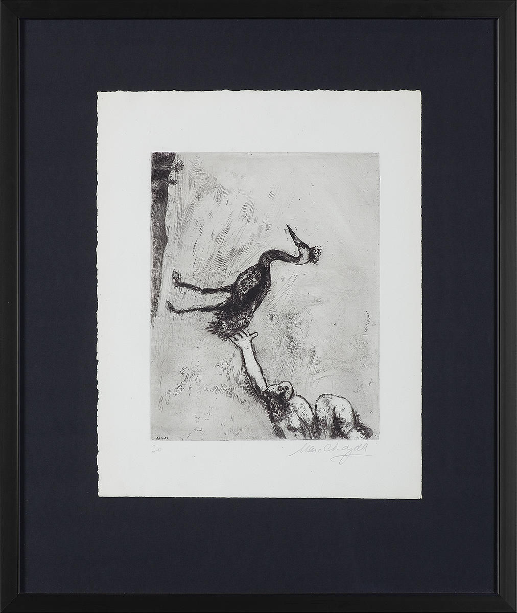 Marc Chagall uczył się rysunku u witebskiego malarza nazwiskiem Juda Pen, następnie od 1907 studiował w Akademii petersburskiej. W 1910 wyjechał na stypendium do Paryża. Zamieszkał w La Ruche na Montparnassie, wszedł do kręgu artystów, wśród których byli m.in. Modigliani, Soutine, Delaunay. W 1914 wrócił do Witebska, w 1915 poślubił Bellę (zm. 1944), muzę i bohaterkę wielu obrazów. W latach 1915-1917 mieszkał w Sankt Petersburgu, gdzie zastała go rewolucja. Mianowany komisarzem sztuk pięknych na obszar Witebska, założył tam i prowadził w latach 1918-1919 szkołę artystyczną, której profesorami byli m.in. Kazimierz Malewicz i El Lissitzky. W 1919 przeniósł się do Moskwy, gdzie do 1922 był kierownikiem artystycznym Państwowego Teatru Żydowskiego. W 1923 ostatecznie opuścił Rosję, osiedlając się w Paryżu. We Francji spędził resztę życia, z przerwą w latach 1941-1947, kiedy to schronił się w Nowym Jorku. Jego styl, wykształcony w młodości niezależnie od równoległych kierunków w sztuce, pozostał w ciągu życia artysty mało zmieniony. Wyobraźnia i sposób obrazowania Chagalla, zbliżone do sztuki naiwnej, wpisały się najsilniej w nurt surrealizmu, stając się jego znaczącym rozszerzeniem. Chagall łączył poetyckość i cudowność swych fantazji z rozwiniętym warsztatem malarza-kolorysty. Był też utalentowanym i płodnym grafikiem (cykle ilustracji do "Martwych dusz" Gogola, 1923-1927, "Bajek" La Fontaine’a, 1927-1930, Biblii, 1931-1955 – każdy cykl liczył ponad 100 plansz w technikach metalowych). Zajmował się scenografią (projekty dla Metropolitan Opera w Nowym Jorku, 1945, Opery w Paryżu, 1958), malarstwem monumentalnym (plafon w Operze paryskiej, 1963-1964), projektował witraże, dekoracje ceramiczne.