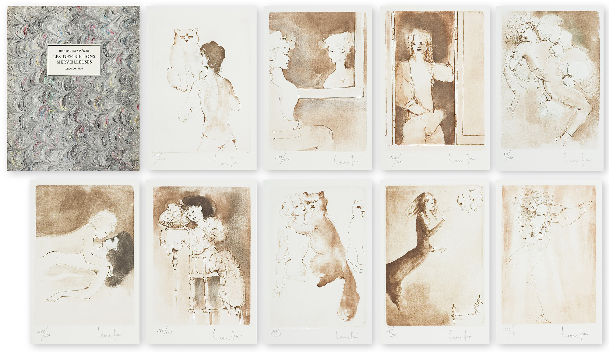 Leonor Fini, z pochodzenia Argentynka, niemal całe życie spędziła we Francji. Nie ukończyła żadnej szkoły artystycznej. W młodości fascynowała się twórczością prerafaelitów, Aubreya Beardsleya i Gustava Klimta. Jej pierwsza wystawa w Paryżu w 1935 zainteresowała surrealistów, poznała Paula Eluarda, Maxa Ernsta, René Magritte’a i Victora Braunera. Odtąd uczestniczyła w niektórych wystawach ruchu surrealistycznego. Interesowała ją biologiczna wegetacja, rytmy przyrody, przemijanie, dla których znajdowała symboliczny wyraz w pracach z późnych lat 40. Od początku aktualnym wątkiem jej twórczości, który od lat 60. zawładnął nią niemal niepodzielnie, był obsesyjny erotyzm, symbolizowany zwłaszcza przez zmysłowe koty-sfinksy. Kocie twarze i sylwetki miały też postaci malowanych przez nią kobiet, nimf, bohaterek mrocznych i wyrafinowanych dramatów. Ważnym wątkiem jej twórczości były portrety o zamglonym, sennym wyrazie. Była żoną Konstantego Jeleńskiego (1922-1987).