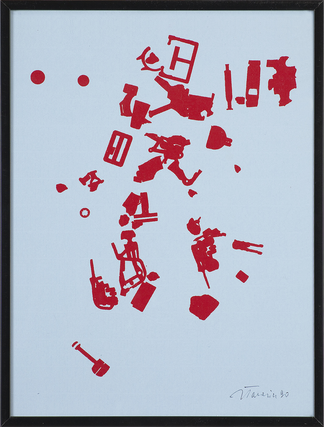 Jan Tarasin (Kalisz 11 IX 1926 - Warszawa 8 VIII 2009) studiował malarstwo w ASP w Krakowie pod kierunkiem prof. Zbigniewa Pronaszki (1946-1951). Jeszcze jako student zadebiutował na I Wystawie Sztuki Nowoczesnej w Krakowie w 1948/49. W połowie lat 50. stworzył cykle litografii: „Nowa Huta i jej mieszkańcy“, 1954, „Dom“, 1955). W pierwszym przeciwstawił się oficjalnemu optymizmowi, w drugim, operując symboliką martwej natury, zawarł treści egzystencjalne i odnoszące do niedawnego dramatu wojny. Po 1956 zaczął malować obrazy niefiguratywne. Układy wyodrębnionych elementów (określanych jako „przedmioty“) umieszczane były przez artystę na płaszczyźnie (cykl „Wnętrze“, 1957) ), lub w aluzyjnej przestrzeni (cykle „Uczta“, 1957, „Brzeg“, 1962-1964, „Przedmioty policzone“, od 1968, „Antykwariat“, 1968). Zasada ta utrzymuje się w jego malarstwie w następnych latach, różnice między okresami twórczości dotyczą sposobu opracowania „przedmiotów“ i ich usytuowania w przestrzeni obrazu lub wobec tła. Od lat 70. „przedmioty“ zmieniają się w graficzne, zwykle czarne znaki na jasnych tłach (cykl „Kolekcja“, od 1971). Tła z kolei bywają iluzyjnie przestrzenne, zróżnicowane walorowo, miękkie. W latach 90. artysta wrócił do kolorystycznego, bardziej malarskiego rozwiązywania zarówno znaków, jak i teł, często ciemnych lub przenikających się z „przedmiotami“ (cykl „Wylęgarnia przedmiotów“, 1992). Tarasin od 1962 jest członkiem „Grupy Krakowskiej“. W 1963-67 uczył na Wydziale Architektury Wnętrz krakowskiej ASP. W 1967 przeniósł się do Warszawy, w 1974 podjął pracę pedagogiczną na Wydziale Malarstwa ASP w Warszawie. W 1987-90 był rektorem tej uczelni. W 1976 otrzymał Nagrodę Krytyki Artystycznej im. Cypriana Kamila Norwida, w 1984 Nagrodę im. Jana Cybisa.; Nagroda na MB Sztuki w San Marino 1965. Równolegle z malarstwem zajmował się rysunkiem i grafiką - do lat 60. litografią, od 1974 serigrafią. W 1974-1981 wydał 8 autorskich „Zeszytów“ z serigrafiami i własnymi tekstami. W 1995 w Galerii Zachęta odbyła się wystawa artysty, której towarzyszył monograficzny katalog.