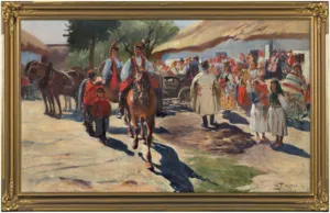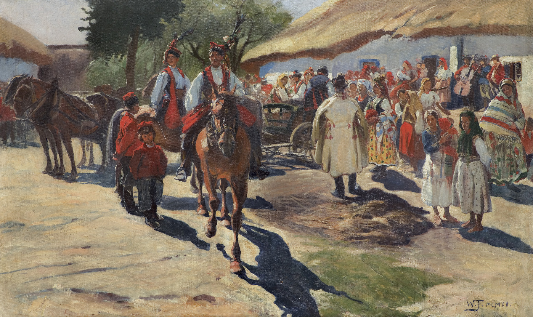 Włodzimierz Przerwa-Tetmajer (Harklowa koło Ludźmierza na Podhalu 1862 - Kraków 1923), przyrodni brat poety Kazimierza, naukę malarstwa rozpoczął wcześnie; już od 1875 uczęszczał na zajęcia do Szkoły Sztuk Pięknych w Krakowie, gdzie następnie (z przerwami) kształcił się do 1895 - początkowo u Franciszka Cynka, Leopolda Loefflera i Władysława Łuszczkiewicza, a po 1889 u Jana Matejki. Równolegle studiował filologię klasyczną na Uniwersytecie Jagiellońskim. W 1882 uczył się jeszcze w Akademii Wiedeńskiej, a w latach 1886-89 w Akademii Monachijskiej u Aleksandra Wagnera. Studia uzupełniał w paryskiej Académie Colarossi. Stypendium cesarskie umożliwiło mu wyjazd do Rzymu. Po powrocie mieszkał w Krakowie. W 1890 ożenił się z Anną Mikołajczykówną, córką gospodarza z podkrakowskiej wsi Bronowice, gdzie sam często przebywał, a w 1895 zamieszkał na stałe. W 1901 założył i następnie przez kilka lat prowadził szkołę malarstwa dla kobiet. Od 1899 był członkiem Towarzystwa Artystów Polskich „Sztuka”; w 1901 jednym z założycieli Towarzystwa „Polska Sztuka Stosowana”; w 1908 współzałożycielem grupy „Zero”. Był wybitnym przedstawicielem nurtu „ludowości”, malarzem obyczajów, pracy i krajobrazu podkrakowskiej wsi. We wcześniejszym okresie tworzył w duchu akademickiego, monachijskiego realizmu. Później wykształcił własny, oryginalny styl - kompozycja jego obrazów była swobodna, malował szerokimi pociągnięciami pędzla, używał jasnych, żywych barw. W latach 1892-1894 współpracował z Wojciechem Kossakiem i Janem Styką przy Panoramie Racławickiej. Projektował witraże, zajmował się ilustratorstwem i malarstwem ściennym, m.in. w 1902 wykonał polichromię kaplicy królowej Zofii w Katedrze na Wawelu. Artysta był pierwowzorem postaci Gospodarza w dramacie S. Wyspiańskiego Wesele.