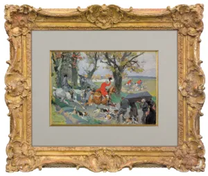 Cesarskie Polowanie w Gödöllö przedstawił artysta również na dużym obrazie namalowanym w roku 1887 (111 x 194 cm; MNW). W dynamicznej scenie, pełnej ruchu, koni, jeźdźców i psów umieścił blisko trzydziestu - portretowo potraktowanych - uczestników polowania. Na miejscu, w Gödöllö, artysta wykonał wiele szkiców i studiów portretowych a także, m.in. „bardzo skończone studium konia na którym cesarz najchętniej jeździ“. Zapowiadał też, że przywiezie ze sobą, do Krakowa „foxhunda, psa na model, którego mi pożyczą, bo to trudne kanalie, a chcę, aby obraz był nec plus ultra.“