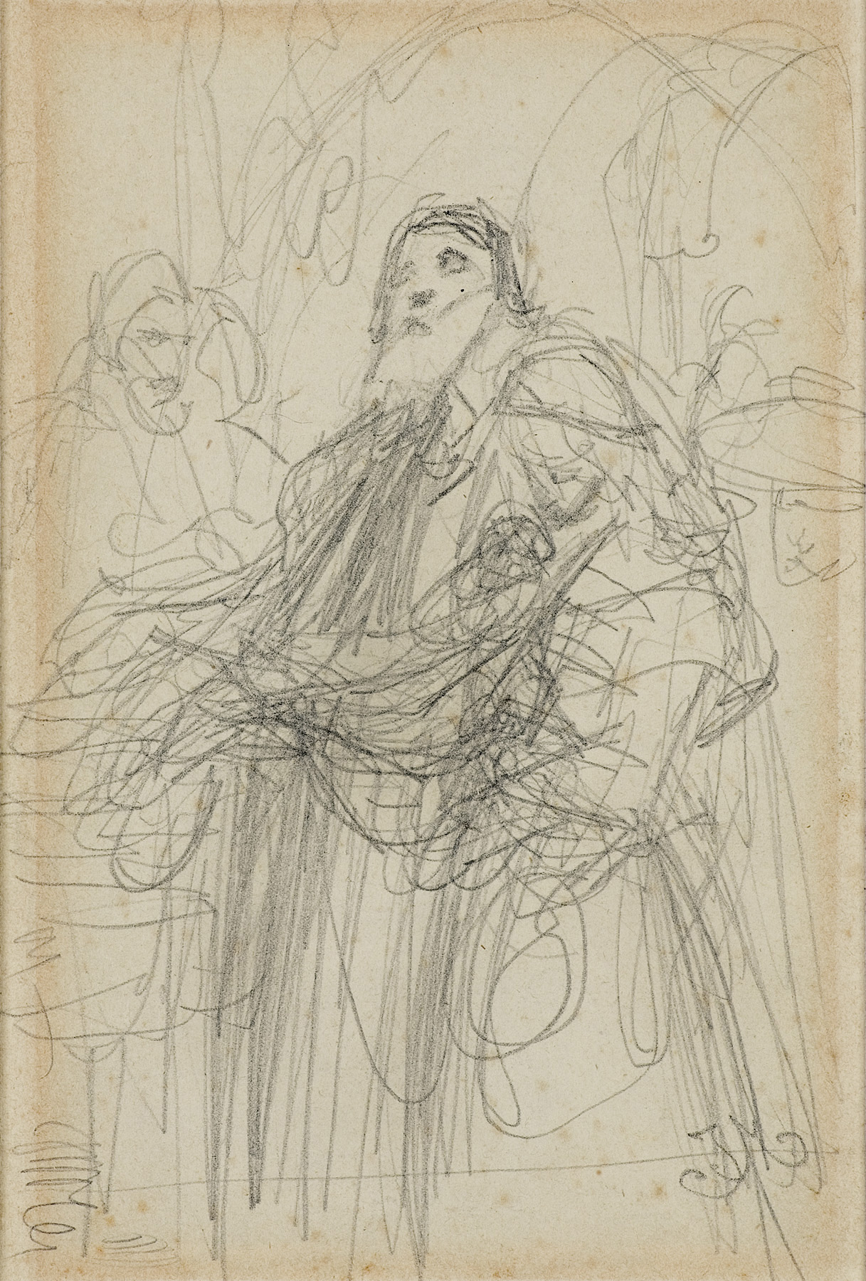 Jan Matejko (Kraków 1838 - Kraków 1893) - najwybitniejszy polski malarz historyczny; studia malarskie rozpoczął pod kierunkiem W. Łuszczkiewicza i W. K. Stattlera w krakowskiej Szkole Sztuk Pięknych (lata 1852-1858). Następnie uczył się w Akademii monachijskiej u H. Anschütza (1859) i przez dwa miesiące w Akademii wiedeńskiej u C. Rubena (1860). Po studiach mieszkał i pracował w Krakowie. W 1873 objął stanowisko dyrektora tamtejszej Szkoły Sztuk Pięknych, pełniąc tę funkcję aż do śmierci. Dużo podróżował - wielokrotnie wyjeżdżał do Paryża (w latach 1865-1880), Wiednia (1866-1888), w 1872 był w Konstantynopolu, a rok później w Pradze i Budapeszcie, odwiedzał również Włochy (1878-1879 i 1883). Był członkiem licznych akademii i towarzystw artystycznych m.in. Académie des Beaux-Arts (1873) i Instytutu Francuskiego (1874) w Paryżu, berlińskiej Akademii Sztuki (1874), Akademii Rafaelowskiej w Urbino (1878) i Künstlersgenossenschaft w Wiedniu (1888). W 1864 został członkiem Towarzystwa Naukowego w Krakowie, w 1887 otrzymał doktorat filozofii honoris causa Uniwersytetu Jagiellońskiego. Był twórcą wielkich i znanych płócien, m.in. Kazania Skargi, Rejtana, Unii Lubelskiej, Batorego pod Pskowem, Bitwy pod Grunwaldem, Hołdu Pruskiego czy Kościuszki pod Racławicami. Malował także portrety i - rzadziej - sceny religijne czy rodzajowe. Ważną rolę w jego twórczości odgrywał rysunek - artysta opracował, m.in. album Ubiory w Polsce od 1200 do 1795 oraz rysunkowy cykl Poczet królów i książąt polskich. W latach 1889-1891, wraz z zespołem uczniów, pracował nad polichromią kościoła Mariackiego w Krakowie. W rodzinnym domu malarza, przy ulicy Floriańskiej w Krakowie od 1898 mieści się poświęcone mu muzeum - Dom Matejki (Oddział MNK).