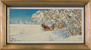 Julian Fałat (Tuligłowy [okręg lwowski] 1853 - Bystra k. Bielska 1929) - malarz i pedagog - jeden z najwybitniejszych artystów polskich okresu przełomu XIX i XX wieku, członek polskich i europejskich stowarzyszeń twórczych oraz Królewskiej Akademii Sztuk Pięknych w Berlinie, wielokrotnie odznaczany medalami na wystawach międzynarodowych. Studiował malarstwo u Władysława Łuszczkiewicza i Leona Dembowskiego w Szkole Sztuk Pięknych w Krakowie (1868-71 i 1881) i w Akademii Sztuk Pięknych w Monachium u Alexandra Strähubera i Johana Leonhardta Raaba (1877-80). Po studiach spędził kilka miesięcy w Rzymie, w 1884 był w Paryżu i w Hiszpanii, a w 1885 odbył podróż morską dookoła świata. W 1886 podczas polowania u ks. Radziwiłłów w Nieświeżu poznał późniejszego cesarza Niemiec Wilhelma II - dla którego następnie w latach 1886-95 pracował w Berlinie jako malarz nadworny. W latach 1894-96 współpracował z Wojciechem Kossakiem przy panoramie Berezyna. W 1895 został powołany na stanowisko dyrektora Szkoły Sztuk Pięknych w Krakowie, w której gruntownie zreformował system nauczania, przekształcając tę uczelnię w nowoczesną Akademię Sztuk Pięknych (r.1900). Do roku 1910 był rektorem Akademii; po przejściu na emeryturę osiadł w miejscowości Bystra k. Bielska. Znakomity akwarelista, malował także olejno. We wcześniejszym okresie tworzył w konwencji realistycznej, z czasem rozjaśnił i wzbogacił paletę, a w akwarelach wprowadzał rozlewną plamę barwną. Zasłynął jako malarz scen myśliwskich rozgrywających się najczęściej w zimowej scenerii; malował też pejzaże, wiejskie sceny rodzajowe, portrety, widoki miejskie.
