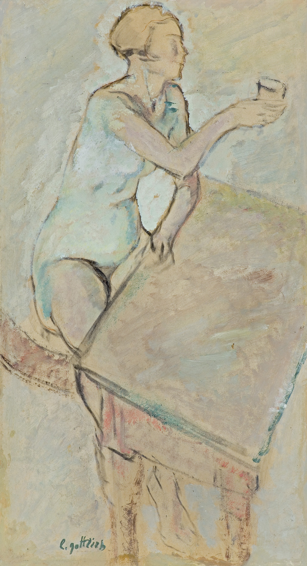 Leopold Gottlieb (Drohobycz 1883 - Paryż 1934) - młodszy brat malarza Maurycego - w latach 1896-1902 studiował w krakowskiej Szkole Sztuk Pięknych pod kierunkiem J. Malczewskiego i T. Axentowicza i następnie w prywatnej szkole A. Ažbego w Monachium. W 1904 na stałe zamieszkał w Paryżu, gdzie związał się z artystycznym środowiskiem Montparnasse'u, blisko przyjaźniąc się z M. Kislingiem i E. Zakiem. W 1910 podróżował do Jerozolimy, gdzie wykładał w Szkole Sztuki i Rzemiosła „Bezalel”. W 1913-1914 był w Hiszpanii. W czasie I wojny światowej służył w I Brygadzie Legionów. Rysował wówczas całe cykle portretów żołnierzy i oficerów, które przyniosły mu znaczną popularność. Po wojnie miał pracownię w Wiedniu, przez dłuższy czas przebywał też w Niemczech. Należał do wiedeńskiego Hagebundu, w 1905 był współzałożycielem „Grupy Pięciu”, w latach 1917-1919 uczestniczył w wystawach „Formistów”, od 1929 był członkiem Stowarzyszenia „Rytm”. Wystawiał w kraju i za granicą, m.in. w Paryżu, Barcelonie, Wiedniu, Berlinie, Zurychu, Bazylei, Genewie, Pittsburghu. We wcześniejszym okresie malował przede wszystkim ekspresyjne portrety, później obrazy o treściach religijnych, a w latach dwudziestych także pejzaże i wielopostaciowe sceny ujęte w rytmiczne układy kompozycyjne. Zajmował się również grafiką. Prace artysty znajdują się w licznych muzeach i kolekcjach prywatnych.