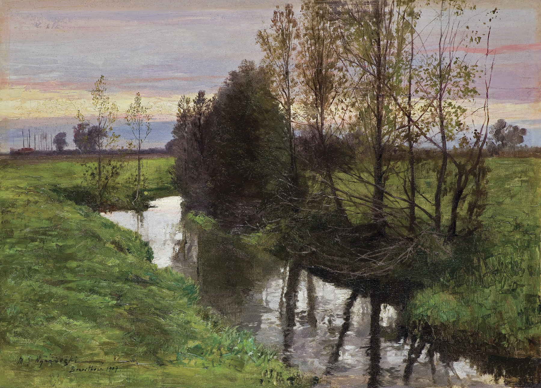 Michał Gorstkin Wywiórski (Warszawa 1861 - Berlin 1926) w latach 1883-1887 studiował w Monachium; w Akademii u profesorów Karla Raupa i Nikolausa Gysisa oraz równolegle w prywatnych pracowniach Józefa Brandta i Alfreda Wierusza-Kowalskiego. W 1884 debiutował na wystawie w krakowskim TPSP, swoje prace pokazywał też w Monachium, gdzie w 1894 na międzynarodowej wystawie w Glaspalast został wyróżniony medalem za obraz Z puszczy litewskiej. W 1895 przeniósł się do Berlina, zaproszony przez Wojciecha Kossaka i Juliana Fałata do pracy przy panoramie Berezyna (1895-1896). W Berlinie zamieszkał na dłużej, a następnie przebywał w Wielkopolsce i w Warszawie. Współpracował też z Janem Styką przy panoramie Bitwa pod Sybinem (1897), a w 1900 wspólnie z Kossakiem podróżował do Hiszpanii i Egiptu, aby wykonać szkice plenerowe do zamierzonych panoram Somosierra (nie zrealizowana) i Bitwa pod piramidami (1901). Wyjeżdżał także na Litwę, wyspę Sylt, do Norwegii, Szwecji, nad Morze Północne i Bałtyk, malował w Amsterdamie, na Krymie i Kaukazie. We wczesnej fazie twórczości, pod silnym wpływem Brandta i Wierusza-Kowalskiego, malował sceny myśliwskie i rodzajowe oraz obrazy z Tatarami, Kozakami czy Czerkiesami, które przyniosły mu powodzenie na monachijskim rynku sztuki. Z czasem naczelnym tematem jego malarstwa stał się czysty pejzaż, postrzegany i malowany wrażliwie i z upodobaniem.