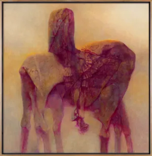 Zdzisław Beksiński (Sanok 24 II 1929 - Warszawa 21 II 2005) studiował w latach 1947-1952 na Wydziale Architektury Politechniki Krakowskiej. Był artystą samoukiem, który osiągnął niekwestionowaną pozycję w polskiej sztuce współczesnej, potwierdzoną obecnością jego prac na prestiżowych wystawach i w kolekcjach muzealnych. Początkowo zajmował się fotografią, którą interesował się od lat studenckich, po 1956 zyskując uznanie jako twórca fotogramów o estetyce opartej o efekty fakturowe. W latach 1958-1962 tworzył abstrakcyjne obrazy-reliefy o bogatej fakturze, głównie metalowe, będące odmianą malarstwa materii. Pod koniec tego okresu powstawały ażurowe formy o kształtach figur i pełnoplastyczne rzeźby w metalu. Kolejnym etapem jego twórczości były lata 1962-1974, kiedy poświęcał się głównie rysunkowi. W latach 60. rysował piórkiem i tuszem figuralne kompozycje odznaczające się karykaturalną deformacją postaci. Od końca lat 60. tworzył rysunki węglem i kredkami, będące monochromatyczną odmianą jego równoległej twórczości malarskiej. Od 1974 zajmował się niemal niepodzielnie malarstwem. Jego charakterystyczny styl bazował na perfekcji technicznej, której towarzyszyła niezwykłość wizji. Malował świat po katastrofie, naznaczony piętnem śmierci i rozpadu. Jego obrazy zaludniają postaci i stwory o ludzkich wprawdzie bądź zwierzęcych kształtach, lecz o cechach fantomów, automatów lub rozpadających się trucheł. Artysta nie nadawał swym obrazom i rysunkom tytułów (poza porządkującymi symbolami), akcentując w ten sposób swój brak zainteresowania dla literackiej strony przedstawień. Sam mówił, że malując całkowicie poddaje się wizji, „fotografuje“ ją. W ostatnich latach włączył do swego warsztatu artystycznego elektroniczne techniki generowania obrazu, które wykorzystywał do tworzenia komputerowych fotomontaży. Sztuka Beksińskiego, wielokrotnie wystawiana i omawiana, budzi skrajne emocje wśród znawców i publiczności.