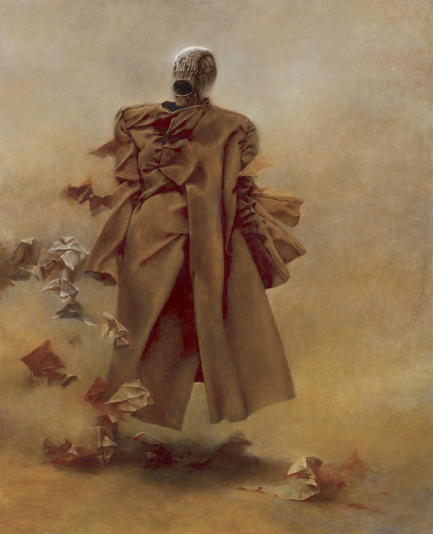 Zdzisław Beksiński (Sanok 24 II 1929 - Warszawa 21 II 2005) studiował w latach 1947-1952 na Wydziale Architektury Politechniki Krakowskiej. Był artystą samoukiem, który osiągnął niekwestionowaną pozycję w polskiej sztuce współczesnej, potwierdzoną obecnością jego prac na prestiżowych wystawach i w kolekcjach muzealnych. Początkowo zajmował się fotografią, którą interesował się od lat studenckich, po 1956 zyskując uznanie jako twórca fotogramów o estetyce opartej o efekty fakturowe. W latach 1958-1962 tworzył abstrakcyjne obrazy-reliefy o bogatej fakturze, głównie metalowe, będące odmianą malarstwa materii. Pod koniec tego okresu powstawały ażurowe formy o kształtach figur i pełnoplastyczne rzeźby w metalu. Kolejnym etapem jego twórczości były lata 1962-1974, kiedy poświęcał się głównie rysunkowi. W latach 60. rysował piórkiem i tuszem figuralne kompozycje odznaczające się karykaturalną deformacją postaci. Od końca lat 60. tworzył rysunki węglem i kredkami, będące monochromatyczną odmianą jego równoległej twórczości malarskiej. Od 1974 zajmował się niemal niepodzielnie malarstwem. Jego charakterystyczny styl bazował na perfekcji technicznej, której towarzyszyła niezwykłość wizji. Malował świat po katastrofie, naznaczony piętnem śmierci i rozpadu. Jego obrazy zaludniają postaci i stwory o ludzkich wprawdzie bądź zwierzęcych kształtach, lecz o cechach fantomów, automatów lub rozpadających się trucheł. Artysta nie nadawał swym obrazom i rysunkom tytułów (poza porządkującymi symbolami), akcentując w ten sposób swój brak zainteresowania dla literackiej strony przedstawień. Sam mówił, że malując całkowicie poddaje się wizji, „fotografuje“ ją. W ostatnich latach włączył do swego warsztatu artystycznego elektroniczne techniki generowania obrazu, które wykorzystywał do tworzenia komputerowych fotomontaży. Sztuka Beksińskiego, wielokrotnie wystawiana i omawiana, budzi skrajne emocje wśród znawców i publiczności.