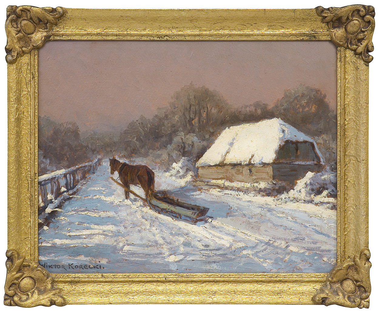 Wiktor Korecki (Kamieniec Podolski 1890 - Komorów k. Warszawy 1980) - malarz pejzażysta - gimnazjum ukończył w Kijowie, tam też studiował w Szkole Rysunkowej Aleksandra Muraszki. Po studiach wrócił do Kamieńca Podolskiego, skąd w roku 1921 wyjechał do Warszawy. Tu miał pracownię na rogu ulic Tamki i Cichej. Niestety zgromadzone tam obrazy spłonęły w czasie powstania 1944 roku. Po powstaniu artysta przebywał w obozie w Pruszkowie skąd trafił do obozu pracy w Lipsku. Do kraju powrócił w roku 1946 i zamieszkał w Komorowie pod Warszawą, a później w Milanówku. Jego nastrojowe krajobrazy emanujące spokojem i pogodą cieszyły się zawsze dużą popularnością. Korecki najczęściej malował pejzaże zimowe z motywem leśnej drogi i strumienia wijącego się wśród śniegów, a obok nich także wiosenne, letnie czy jesienne widoki z Mazowsza.