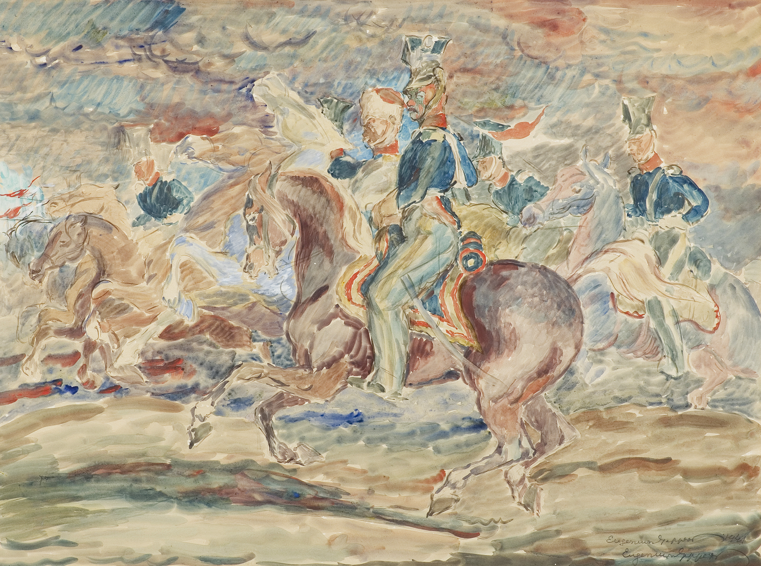 Eugeniusz Geppert (Lwów 1890 - Wrocław 1979) w latach 1912-14 i 1918-1920 studiował w krakowskiej Akademii Sztuk Pięknych pod kierunkiem Jacka Malczewskiego i Stanisława Dębickiego. Dyplom uzyskał w roku 1920. W latach 1925-1927 jako stypendysta ZPAP przebywał w Paryżu, dokąd i później wielokrotnie wyjeżdżał. W 1928 wrócił do kraju i zamieszkał w Krakowie. Należał do grup „Zwornik” i „Nowa Generacja”, był członkiem redakcji „Głosu Plastyków” oraz wiceprezesem i przedstawicielem Polski w „Confédération Internationale des Associations Plastiques”. Po wojnie osiadł na stałe we Wrocławiu, gdzie został profesorem Państwowej Wyższej Szkoły Sztuk Plastycznych, w różnych latach pełniąc funkcje dyrektora, rektora, kierownika pracowni malarskiej. W 1962 był współzałożycielem ugrupowania plastyków, tzw. „Szkoły Wrocławskiej”. Jednym z ulubionych motywów jego malarstwa byli jeźdźcy konni, przedstawiani tak w scenach historycznych, jak i współczesnych, batalistycznych i rodzajowych. Artysta nawiązywał tu do całej tradycji polskiego malarstwa, w szczególności do obrazów P. Michałowskiego. Malował także pejzaże, martwe natury i akty. Z czasem ciemna tonacja jego płócien uległa rozjaśnieniu, a kompozycja obrazów swoistej dekoracyjnej stylizacji w duchu malarstwa francuskiego, m.in. R. Dufy. Artysta brał udział w licznych wystawach – w okresie międzywojennym, podczas pobytu w Paryżu kilkakrotnie wystawiał na Salonie Jesiennym i w paryskich galeriach, później wielokrotnie w TPSP w Krakowie i Lwowie oraz w TZSP, IPS-ie i Salonie Garlińskiego w Warszawie. Swoje prace prezentował też za granicą, m.in. w 1938 na Międzynarodowej Wystawie Sztuki w Pittsburghu. Wiele wystaw miał też w okresie powojennym.