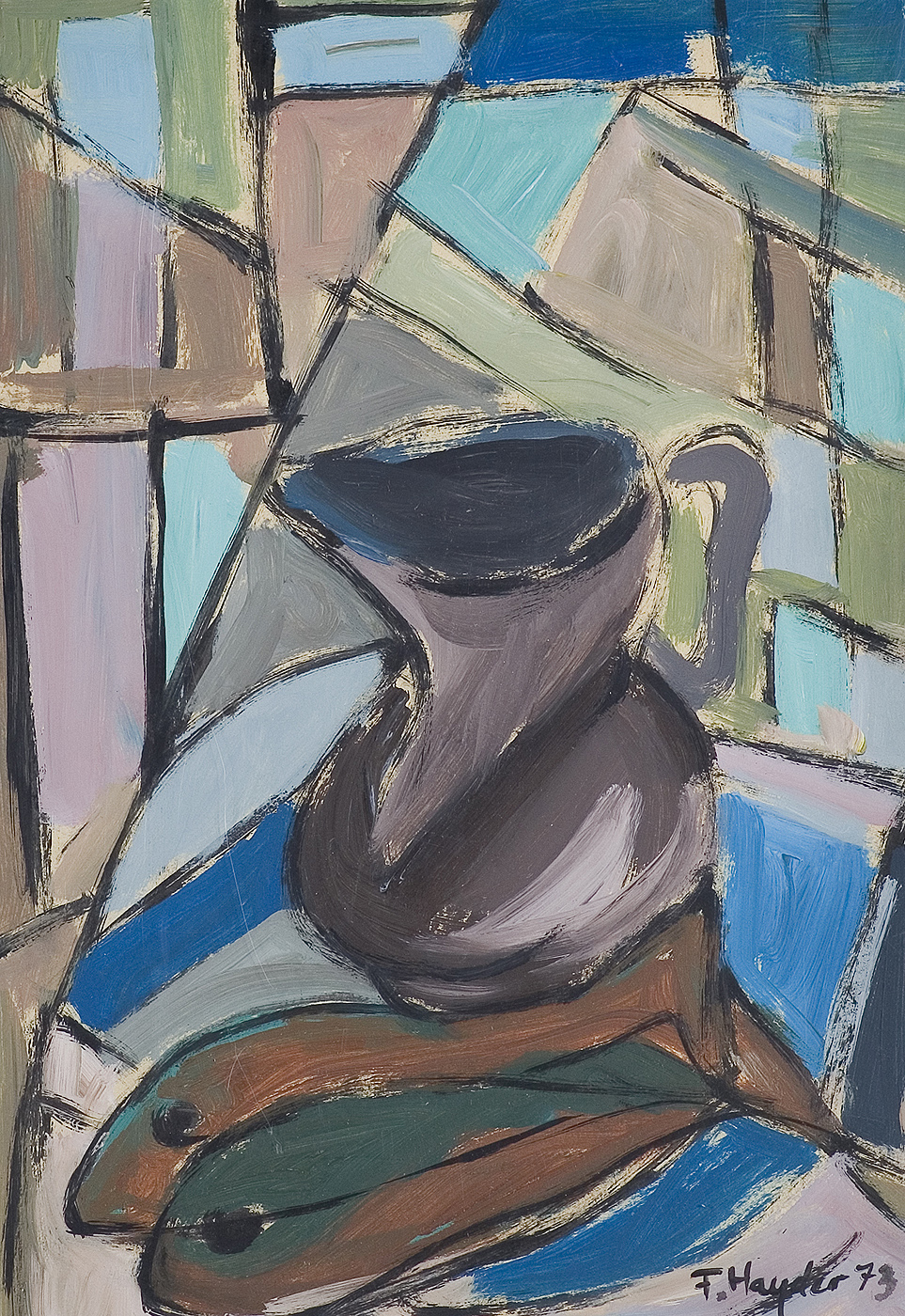 Fryderyk Antoni Hayder (Przemyśl 25 IV 1905 - Gliwice 1994) malarz, grafik; w latach 1925-1933 studiował w ASP w Krakowie - malarstwo w pracowni Józefa Mehoffera, rzeźbę u Xawerego Dunikowskiego, otrzymując dyplom z wyróżnieniem. Od 1935 zamieszkał w Warszawie. Obok malarstwa zajmował się grafiką użytkową i aranżacją wnętrz. Przed wojną brał udział w wystawach m.in. w Zachęcie (1937) i w TPSP w Krakowie (1938). Podczas Powstania Warszawskiego większa część prac uległa zniszczeniu. W 1945 artysta zamieszkał w Gliwicach, uratowane rysunki i szkicowniki z lat 1926-1944, przekazał do Muzeum w Gliwicach, gdzie po wojnie pracował jako kustosz. Współtworzył Gliwicki Oddział ZPAP, uczestniczył w wielu wystawach ogólnopolskich (Wystawa Plastyki Ziem Nadodrzańskich, W-wa 1959; Malarstwo w XV-lecie PRL, W-wa 1961). Miał szereg wystaw indywidualnych. m.in. 1957 CBWA Katowice, Szczecin; w 1984 z okazji 50-lecia pracy twórczej w Muzeum Okręgowym w Przemyślu; 1985 BWA Katowice, 1987 Zachęta Warszawa. Malował kompozycje figuralne, pejzaże, sceny rodzajowe i martwe natury. Po wojnie podejmował tematykę zaangażowana ideologicznie, od połowy lat 50. większą uwagę poświęcił stronie formalnej, malując w konwencji postkubistycznej. Obraz budował za pomocą linearnej siatki grubych konturów, kolor wyważony, rzadko o intensywnym natężeniu kładziony był płasko. Na początku lat 60. malował szereg abstrakcji o charakterze informelowskich, gdzie konstrukcja obrazu uległa zmiękczeniu, by w latach 70. powrócić do konturu wyznaczającego układ form i przestrzeń. Dążył do syntezy, malował dużymi płaszczyznami, upraszczał rysunek. Podejmował tematykę religijną, cykl „Droga Krzyżowa” znajduje się w Muzeum Narodowym Ziemi Przemyskiej w Przemyślu, jego prace są m.in. w zbiorach Muzeum Górnośląskiego w Bytomiu i w Muzeum w Gliwicach.
