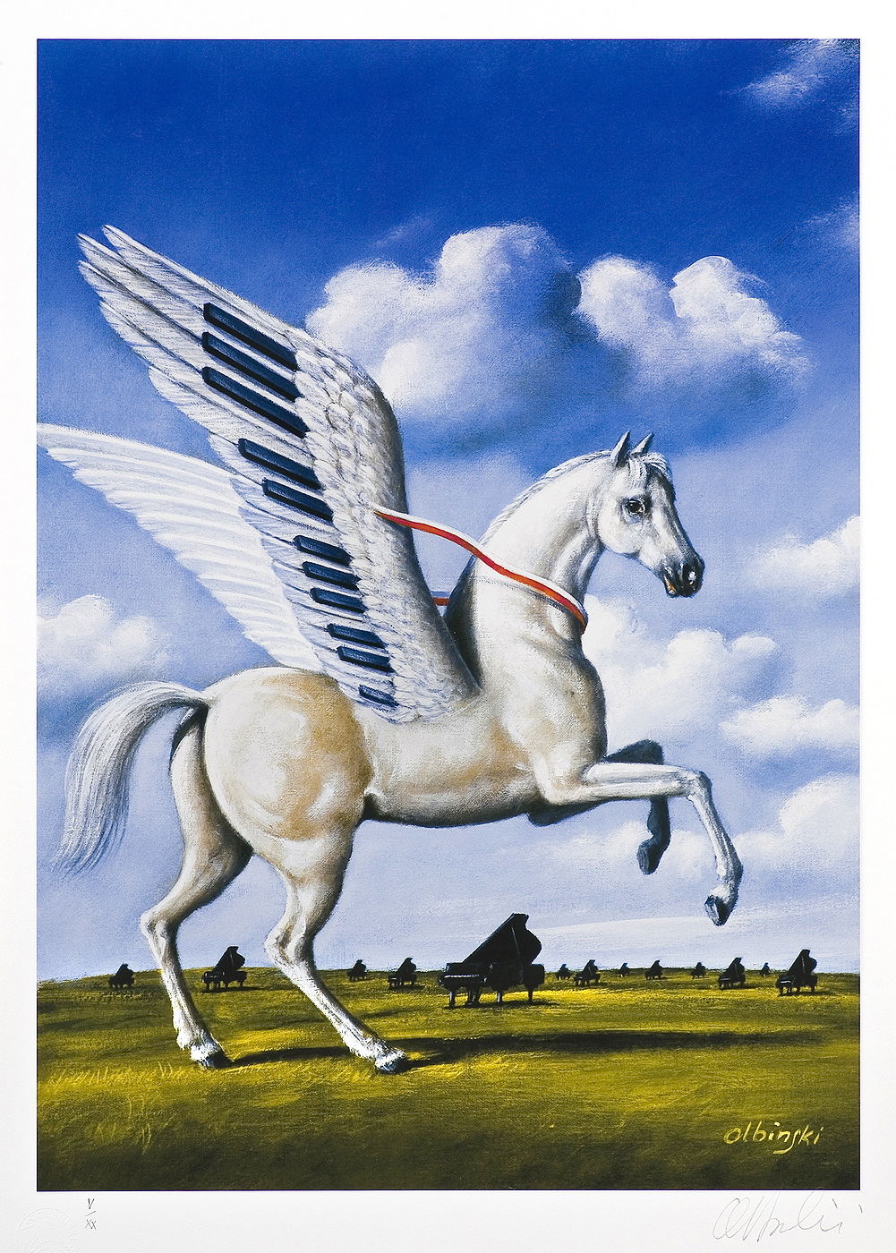 Rafał Olbiński (Kielce 1945, mieszka w Warszawie) - studiował na Wydziale Architektury Politechniki Warszawskiej, gdzie uzyskał dyplom w 1969. Od lat studenckich zajmował się grafiką użytkową i plakatem. Uczestniczył w wielu polskich i międzynarodowych wystawach związanych z grafiką i plakatem. Był autorem oprawy graficznej magazynu "Jazz Forum". W 1981 wyjechał z Polski i osiadł w Nowym Jorku gdzie kantynuował twórczość plakatową, a także zajął się malarstwem, rysunkiem prasowym i ilustracją. Debiutował w 1981 okładką do pisma "Psychology Today". Publikował w czasopismach takich jak "Newsweek", "Time", "Business Week", "The New York Times", "Atlantic Monthly", "Playboy", "New Yorker", "Omni". Od 1985 wykładał w School of Visual Arts w Nowym Jorku. Od wielu lat projektuje też plakaty dla New York City Opera. W 1994 otrzymał paryską nagrodę za najbardziej pamiętny plakat roku (International Oscar for the World's Most Memorable Poster "Prix Savignac 1994"), w 1995 wygrał konkurs na plakat "Nowy Jork – stolica świata". Jest reprezentowany w zbiorach takich, jak Museum of Modern Art w Nowym Jorku, Library of Congress Print Collection w Waszyngtonie, Muzeum Plakatu w Wilanowie oraz w wielu innych publicznych i prywatnych kolekcjach na całym świecie. Od lat 90. często bywa i wystawia w Polsce, obecnie mieszka w Warszwie. Jego prace odznaczają się specyficznym typem obrazowania, który zaskarbił mu opinię surrealisty. Dzięki zaskakującym zestawieniom elementów obrazu, łączeniu różnych planów i niezwykłemu skalowaniu, a także zawsze obecnej w pracach Olbińskiego narracji, jego dzieła cieszą się niesłabnącym zainteresowaniem i popularnością.