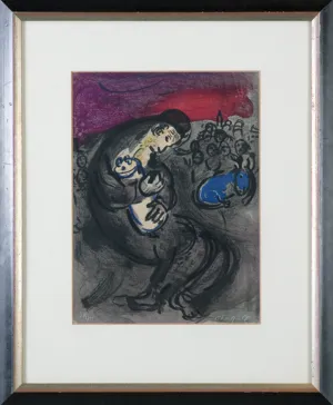 Marc Chagall uczył się rysunku u witebskiego malarza nazwiskiem Juda Pen, następnie od 1907 studiował w Akademii petersburskiej. W 1910 wyjechał na stypendium do Paryża. Zamieszkał w La Ruche na Montparnassie, wszedł do kręgu artystów, wśród których byli m.in. Modigliani, Soutine, Delaunay. W 1914 wrócił do Witebska, w 1915 poślubił Bellę (zm. 1944), muzę i bohaterkę wielu obrazów. W latach 1915-1917 mieszkał w Sankt Petersburgu, gdzie zastała go rewolucja. Mianowany komisarzem sztuk pięknych na obszar Witebska, założył tam i prowadził w latach 1918-1919 szkołę artystyczną, której profesorami byli m.in. Kazimierz Malewicz i El Lissitzky. W 1919 przeniósł się do Moskwy, gdzie do 1922 był kierownikiem artystycznym Państwowego Teatru Żydowskiego. W 1923 ostatecznie opuścił Rosję, osiedlając się w Paryżu. We Francji spędził resztę życia, z przerwą w latach 1941-1947, kiedy to schronił się w Nowym Jorku. Jego styl, wykształcony w młodości niezależnie od równoległych kierunków w sztuce, pozostał w ciągu życia artysty mało zmieniony. Wyobraźnia i sposób obrazowania Chagalla, zbliżone do sztuki naiwnej, wpisały się najsilniej w nurt surrealizmu, stając się jego znaczącym rozszerzeniem. Chagall łączył poetyckość i cudowność swych fantazji z rozwiniętym warsztatem malarza-kolorysty. Był też utalentowanym i płodnym grafikiem (cykle ilustracji do "Martwych dusz" Gogola, 1923-1927, "Bajek" La Fontaine’a, 1927-1930, Biblii, 1931-1955 – każdy cykl liczył ponad 100 plansz w technikach metalowych). Zajmował się scenografią (projekty dla Metropolitan Opera w Nowym Jorku, 1945, Opery w Paryżu, 1958), malarstwem monumentalnym (plafon w Operze paryskiej, 1963-1964), projektował witraże, dekoracje ceramiczne.