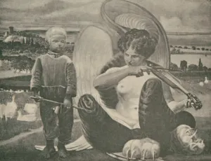 Prezentowane dzieło stanowi lewe skrzydło tryptyku (którego centralną część wystawiona była na marcowej licytacji w naszym domu aukcyjnym) pokazanego przez Jacka Malczewskiego na III Dobroczynnej Wystawie TZSP w Warszawie w 1906 roku pod autorskim tytułem Stara baśń. W roku 1916 tryptyk wystawiony został w TZSP w Warszawie, jako własność dra Leona Goldberga-Górskiego w Warszawie, w którego zbiorach określany był jednoznacznym tytułem Sztuka. Latem 1929 roku tryptyk eksponowany był w TZSP w Warszawie jako własność Edmunda Mętlewicza.