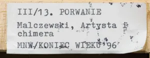 – na ramie u góry nalepka wystawy w MNW o treści: IV/9. | Pastuszek i chimera | J. Malczewski – pryw. | MNW/ KONIEC WIEKU '96