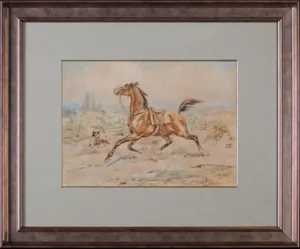 Juliusz Kossak (Wiśnicz 1824 - Kraków 1899) - malarz i ilustrator - był jednym z najpopularniejszych artystów polskich 2. połowy XIX wieku. Naukę rysunku i malarstwa rozpoczął we lwowskiej pracowni Jana Maszkowskiego; później wiele rysował z natury odwiedzając majątki szlacheckie na Ukrainie, Podolu i Wołyniu. W roku 1852 był w Wiedniu, na Węgrzech i w Petersburgu, a następnie zamieszkał na stałe w Warszawie. Lata 1856-1860 spędził w Paryżu, gdzie przyjaźnił się z Horacem Vernetem. Powróciwszy do Warszawy w latach 1862-1868 był kierownikiem artystycznym „Tygodnika Ilustrowanego”. W roku 1869 przeniósł się na stałe do Krakowa, skąd wyjeżdżał jeszcze do Monachium, by malować w atelier batalisty Franza Adama. Kossak był przede wszystkim znakomitym akwarelistą; rzadziej posługiwał się techniką olejną. Malował obrazy historyczne i batalistyczne, sceny rodzajowe ilustrujące życie i tradycje dworu szlacheckiego oraz obyczaje polskiego ludu. Ale prawdziwymi bohaterami jego obrazów były konie, których ruch, temperament, charakter i indywidualność potrafił po mistrzowsku przedstawić. Był także autorem wielu ilustracji do czasopism i książek, trafiającym bezbłędnie tak w klimat utworów literackich, jak i w tęsknoty i potrzeby odbiorców - czytelników Pieśni o ziemi naszej Wincentego Pola, Trylogii Henryka Sienkiewicza, Pana Tadeusza i poematów Adama Mickiewicza.
