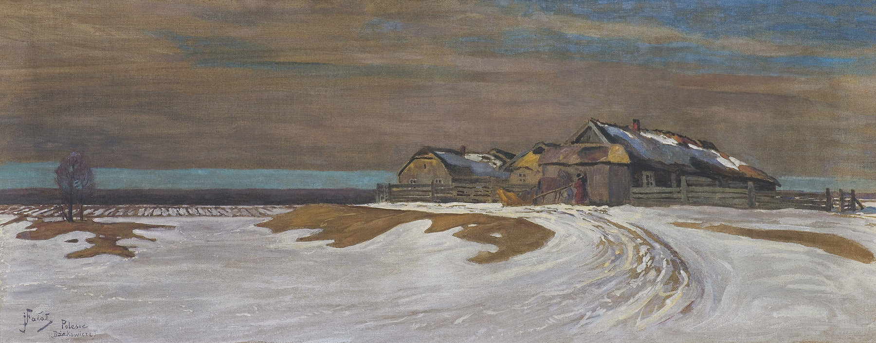 Julian Fałat (Tuligłowy [okręg lwowski] 1853 - Bystra k. Bielska 1929) - malarz i pedagog - jeden z najwybitniejszych artystów polskich okresu przełomu XIX i XX wieku, członek polskich i europejskich stowarzyszeń twórczych oraz Królewskiej Akademii Sztuk Pięknych w Berlinie, wielokrotnie odznaczany medalami na wystawach międzynarodowych. Studiował malarstwo u Władysława Łuszczkiewicza i Leona Dembowskiego w Szkole Sztuk Pięknych w Krakowie (1868-71 i 1881) i w Akademii Sztuk Pięknych w Monachium u Alexandra Strähubera i Johana Leonhardta Raaba (1877-80). Po studiach spędził kilka miesięcy w Rzymie, w 1884 był w Paryżu i w Hiszpanii, a w 1885 odbył podróż morską dookoła świata. W 1886 podczas polowania u ks. Radziwiłłów w Nieświeżu poznał późniejszego cesarza Niemiec Wilhelma II - dla którego następnie w latach 1886-95 pracował w Berlinie jako malarz nadworny. W latach 1894-96 współpracował z Wojciechem Kossakiem przy panoramie Berezyna. W 1895 został powołany na stanowisko dyrektora Szkoły Sztuk Pięknych w Krakowie, w której gruntownie zreformował system nauczania, przekształcając tę uczelnię w nowoczesną Akademię Sztuk Pięknych (r.1900). Do roku 1910 był rektorem Akademii; po przejściu na emeryturę osiadł w miejscowości Bystra k. Bielska. Znakomity akwarelista, malował także olejno. We wcześniejszym okresie tworzył w konwencji realistycznej, z czasem rozjaśnił i wzbogacił paletę, a w akwarelach wprowadzał rozlewną plamę barwną. Zasłynął jako malarz scen myśliwskich rozgrywających się najczęściej w zimowej scenerii; malował też pejzaże, wiejskie sceny rodzajowe, portrety, widoki miejskie.