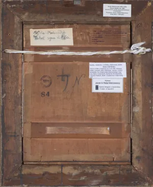 Jacek Malczewski (Radom 1854 - Kraków 1929) - wybitny przedstawiciel malarstwa polskiego modernizmu, studia artystyczne rozpoczął w krakowskiej Szkole Sztuk Pięknych, gdzie w latach 1872-1875 uczył się pod kierunkiem Feliksa Szynalewskiego, Władysława Łuszczkiewicza i Jana Matejki, do którego pracowni uczęszczał ponownie w latach 1877-1879. Następnie kształcił się w Paryskiej École des Beaux Arts u E. Lehmanna (1876-1877).