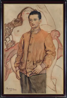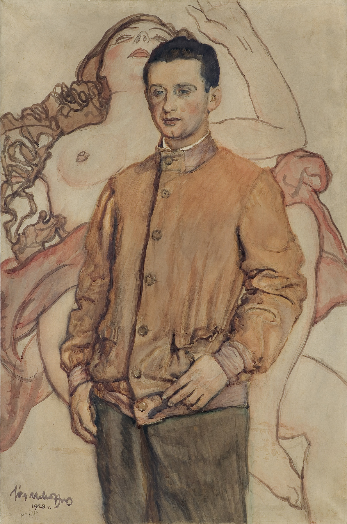 Józef Mehoffer (Ropczyce 1869-Wadowice 1946) - malarz, grafik, scenograf i pedagog; obok Stanisława Wyspiańskiego był najwybitniejszym polskim twórcą witraży i polichromii. Uczeń Jana Matejki i uczelni paryskich - Ecolé des Beaux Arts i Accadémie Colarossi - swą drogę twórczą rozpoczął w latach 1889-1891 od pracy nad polichromią Kościoła Mariackiego w Krakowie (pod kierunkiem Matejki). W roku 1895 otrzymał I nagrodę na międzynarodowym konkursie na witraże do kolegiaty we Fryburgu w Szwajcarii (ich realizacja trwała aż do 1934). W latach następnych otrzymywał różne inne zamówienia na witraże i polichromie, m.in. dla katedry na Wawelu i w Płocku, katedry Ormiańskiej we Lwowie, dla kościołów w Opawie, Onnes w Szwajcarii, w Jutrosinie, we Włocławku czy Przemyślu (nie wszystkie zrealizowane). Był wybitnym reprezentantem sztuki secesji. Tworzył dekoracyjnie traktowane portrety, w tym autoportrety i portrety żony, a także obrazy o zabarwieniu rodzajowym, które w latach 1895-1917 zyskiwały wymowę kompozycji symbolicznych. Malował także pejzaże łączące secesyjną dekoracyjność ze zdobyczami impresjonizmu. Z mistrzowską biegłością posługiwał się różnymi technikami - olejem, temperą, akwarelą i gwaszem - zajmował się także grafiką. Ostatnia wielka wystawa dzieł artysty, zatytułowana Opus magnum, odbyła się w roku 2000 w Muzeum Narodowym w Krakowie.