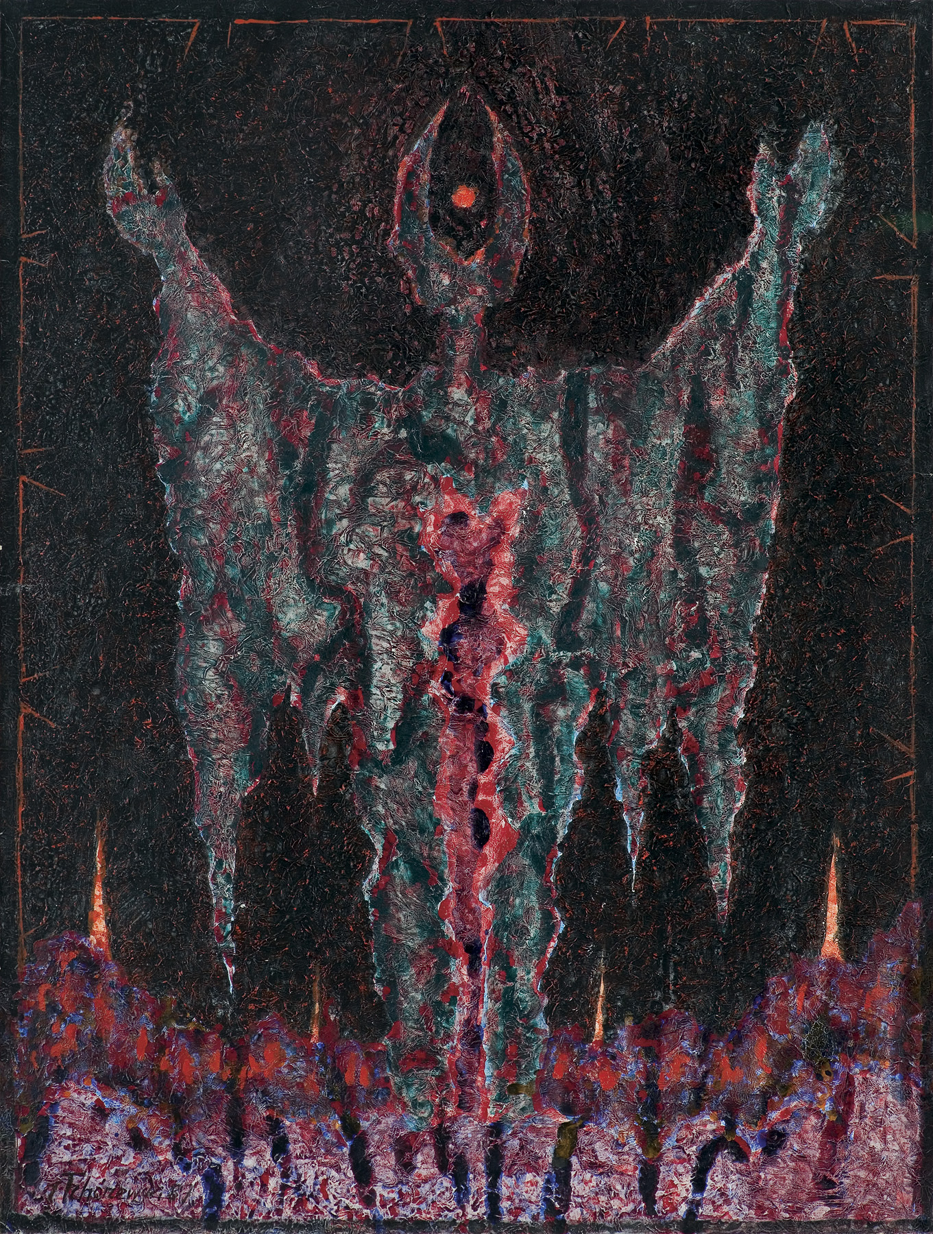 Jerzy Tchórzewski w czasie wojny walczył w AK. Studiował w ASP w Krakowie w latach 1946-1951. W czasie studiów związał się z kręgiem Grupy Krakowskiej. Debiutował na I Wystawie Sztuki Nowoczesnej w Krakowie w 1948, w 1955 uczestniczył w wystawie w warszawskim Arsenale, gdzie zdobył nagrodę. W tym czasie mieszkał już w Warszawie, gdzie w 1954 podjął pracę pedagogiczną w ASP (przeszedł na emeryturę w 1998). Już od wczesnego, figuratywnego okresu twórczości (1948-1955), kiedy umieszczał postaci i fantastyczne stwory w wyimaginowanych pejzażach, odznaczał się zainteresowaniami i typem wyobraźni bliskiej surrealizmowi. W drugiej połowie 50. zaczął malować abstrakcyjne obrazy nasuwające na myśl kosmiczne kataklizmy i erupcje materii, rozjaśniane poszarpanymi liniami błyskawic kontrastujących z ciemnym tłem. Niekiedy w jego kompozycjach pojawiały się kształty ludzkie i zwierzęce. Zbieżność surrealizujących wizji Tchórzewskiego z równoległymi tendencjami malarstwa informel sprawiła, że w 1959 stowarzyszył się z międzynarodowym ruchem artystycznym Phases. W późniejszych latach artysta komplikował fakturę obrazów, wykorzystując m.in. właściwości schnięcia grubej warstwy farby, a w przypadku gwaszy - efekty zmiętego papieru. Od końca lat 70. podejmował chętnie tematykę religijną. Apogeum tego nurtu przypadło na lata 80., kiedy artysta związał się z niezależnym ruchem artystycznym, wystawiając często w kościołach i na pokazach prywatnych. W 1986 otrzymał niezależną Nagrodę im. Jana Cybisa.