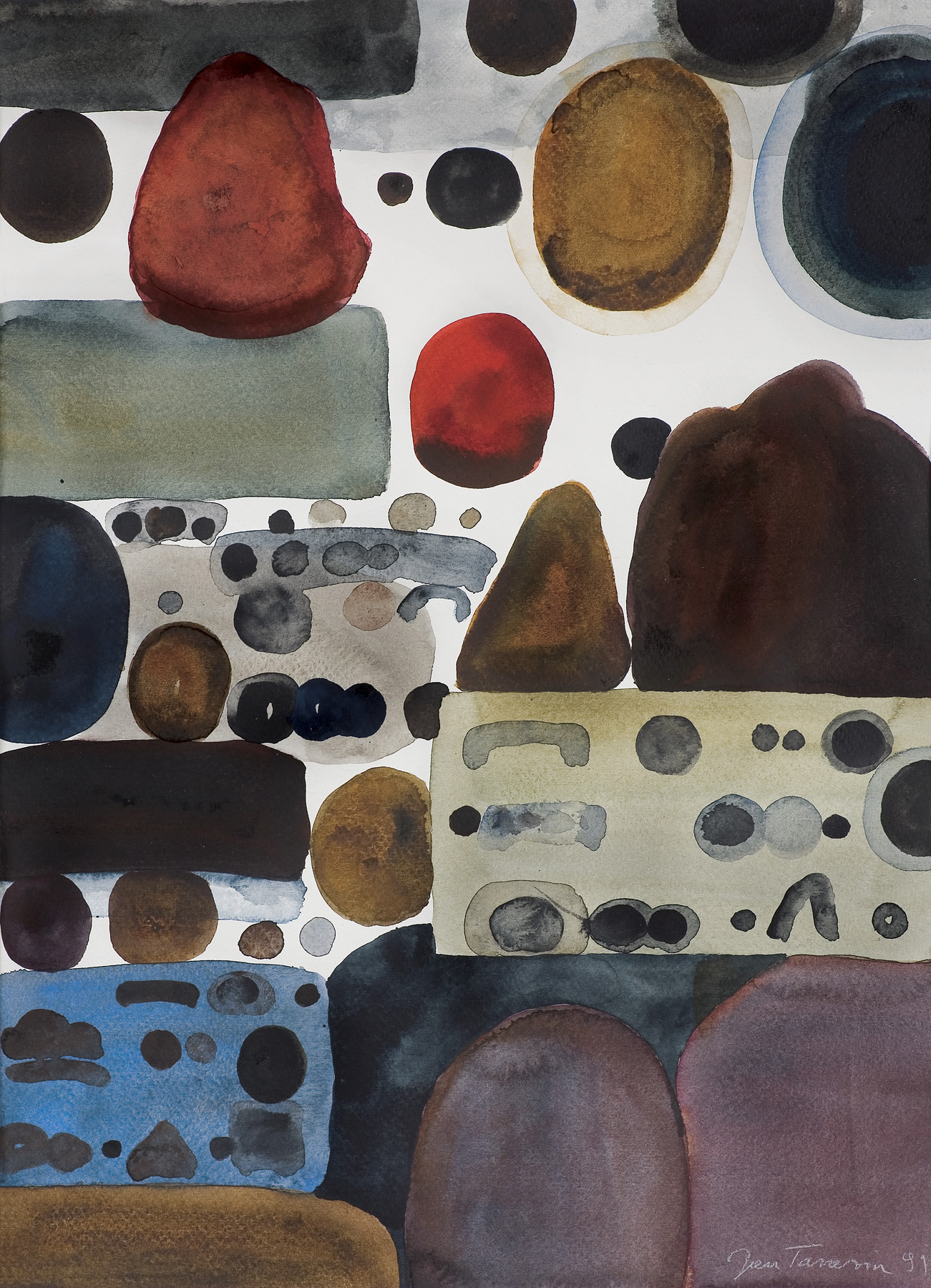 Jan Tarasin (Kalisz 11 IX 1926 - Warszawa 8 VIII 2009) studiował malarstwo w ASP w Krakowie pod kierunkiem prof. Zbigniewa Pronaszki (1946-1951). Jeszcze jako student zadebiutował na I Wystawie Sztuki Nowoczesnej w Krakowie w 1948/49. W połowie lat 50. stworzył cykle litografii: „Nowa Huta i jej mieszkańcy“, 1954, „Dom“, 1955). W pierwszym przeciwstawił się oficjalnemu optymizmowi, w drugim, operując symboliką martwej natury, zawarł treści egzystencjalne i odnoszące do niedawnego dramatu wojny. Po 1956 zaczął malować obrazy niefiguratywne. Układy wyodrębnionych elementów (określanych jako „przedmioty“) umieszczane były przez artystę na płaszczyźnie (cykl „Wnętrze“, 1957) ), lub w aluzyjnej przestrzeni (cykle „Uczta“, 1957, „Brzeg“, 1962-1964, „Przedmioty policzone“, od 1968, „Antykwariat“, 1968). Zasada ta utrzymuje się w jego malarstwie w następnych latach, różnice między okresami twórczości dotyczą sposobu opracowania „przedmiotów“ i ich usytuowania w przestrzeni obrazu lub wobec tła. Od lat 70. „przedmioty“ zmieniają się w graficzne, zwykle czarne znaki na jasnych tłach (cykl „Kolekcja“, od 1971). Tła z kolei bywają iluzyjnie przestrzenne, zróżnicowane walorowo, miękkie. W latach 90. artysta wrócił do kolorystycznego, bardziej malarskiego rozwiązywania zarówno znaków, jak i teł, często ciemnych lub przenikających się z „przedmiotami“ (cykl „Wylęgarnia przedmiotów“, 1992). Tarasin od 1962 jest członkiem „Grupy Krakowskiej“. W 1963-67 uczył na Wydziale Architektury Wnętrz krakowskiej ASP. W 1967 przeniósł się do Warszawy, w 1974 podjął pracę pedagogiczną na Wydziale Malarstwa ASP w Warszawie. W 1987-90 był rektorem tej uczelni. W 1976 otrzymał Nagrodę Krytyki Artystycznej im. Cypriana Kamila Norwida, w 1984 Nagrodę im. Jana Cybisa.; Nagroda na MB Sztuki w San Marino 1965. Równolegle z malarstwem zajmował się rysunkiem i grafiką - do lat 60. litografią, od 1974 serigrafią. W 1974-1981 wydał 8 autorskich „Zeszytów“ z serigrafiami i własnymi tekstami. W 1995 w Galerii Zachęta odbyła się wystawa artysty, której towarzyszył monograficzny katalog.