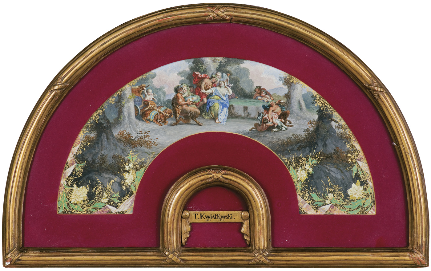 Teofil Kwiatkowski (Pułtusk 1809 - Avallon w Burgundii 1891) - wybitny przedstawiciel romantyzmu w malarstwie polskim - w latach 1825-1830 studiował malarstwo na Oddziale Sztuk Pięknych Uniwersytetu Warszawskiego u A. Brodowskiego i A. Blanka. Jako oficer 4. pułku piechoty walczył w powstaniu listopadowym; po klęsce jego emigrował do Francji, gdzie pozostał do końca życia. początkowo przebywał w Avignonie, później w Paryżu. Tu studiował jeszcze u A. Toussainta, P. Sentiesa, J. L. Dulonga i L. Cognieta. Utrzymywał bliskie kontakty ze środowiskiem emigracyjnym, m.in. z rodziną ks. Czartoryskich, Adamem Mickiewiczem, Fryderykiem Chopinem, Cyprianem Kamilem Norwidem, Teofilem Lenartowiczem. Wielokrotnie portretował Chopina (także na łożu śmierci), któremu poświęcił też dużą, symboliczną kompozycję Bal w Hôtel Lambert - Polonez Chopina. Malował piękne, przesycone romantyczną aurą krajobrazy z Prowansji i Burgundii. Malował obrazy olejne i bardzo liczne, mistrzowskie akwarele – portrety, pejzaże, sceny rodzajowe, patriotyczne, kostiumowe i alegoryczne. Jego dzieła odznaczają się niepoślednimi walorami kolorystycznymi, emocjonalnym stosunkiem do natury, a także typowo romantyczną skłonnością do fantazji i metafory, zabarwionej często odcieniem melancholii. Artysta wystawiał, m.in. na oficjalnych Salonach paryskich (1839-1881), nadsyłał swe prace także na wystawy krajowe (1862-1873 TZSP w Warszawie). Jego obrazy, akwarele, rysunki znajdują się w Muzeum Mickiewicza w Paryżu, w zbiorach Muzeów Narodowych w Warszawie, Krakowie i Poznaniu, pozostałe są w rękach prywatnych we Francji. Na rynku antykwarskim są rzadkością.