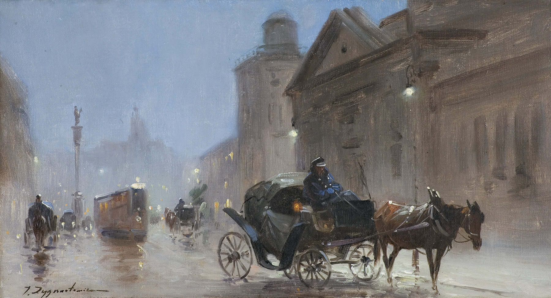 Czesław Wasilewski (ok. 1875 - Warszawa/ Łódź 1946?47) to popularny w okresie międzywojennym warszawski malarz, autor obrazów inspirowanych płótnami Kossaka, Brandta, Chełmońskiego, Wierusza-Kowalskiego czy Fałata. Był samoukiem; wprawdzie w 1911 zapisał się do warszawskiej Szkoły Sztuk Pięknych, ale o jego studiach nic bliższego nie wiadomo. Być może uczęszczał tam (1913-1917) do pracowni Wojciecha Kossaka, dla którego później, na początku lat dwudziestych, przygotowywał podmalówki do obrazów. Uczestniczył w wystawie w Lublinie (1922), wystawiał na Salonach warszawskiej Zachęty (1925,1926, 1927), w Katowicach (1926), Częstochowie (1927), Gdyni (1929), Kaliszu (1931), Poznaniu (1928, 1931). Malował przede wszystkim liczne zaprzęgi, sanny, wyjazdy na polowania, wypadki w podróży, ułanów na patrolu, łosie, sarny i dziki w lesie. Tworzył także nastrojowe pejzaże, wyraźnie inspirowane malarstwem J. Chełmońskiego Rzadziej malował także kwiaty i martwe natury. Utożsamiany z malarzem o nazwisku „Zygmuntowicz”, którego prace pojawiały się na rynku sztuki od trzydziestych lat XX wieku. Stawiany przed tym nazwiskiem inicjał I. lub F., sugerować może imię Ignacy lub Franciszek. Sylwetkę malarza bliżej omówił S. Bołdok w artykule Malarz o dwóch nazwiskach (Art and Business 1992, nr 7-8, s. 48-49).
