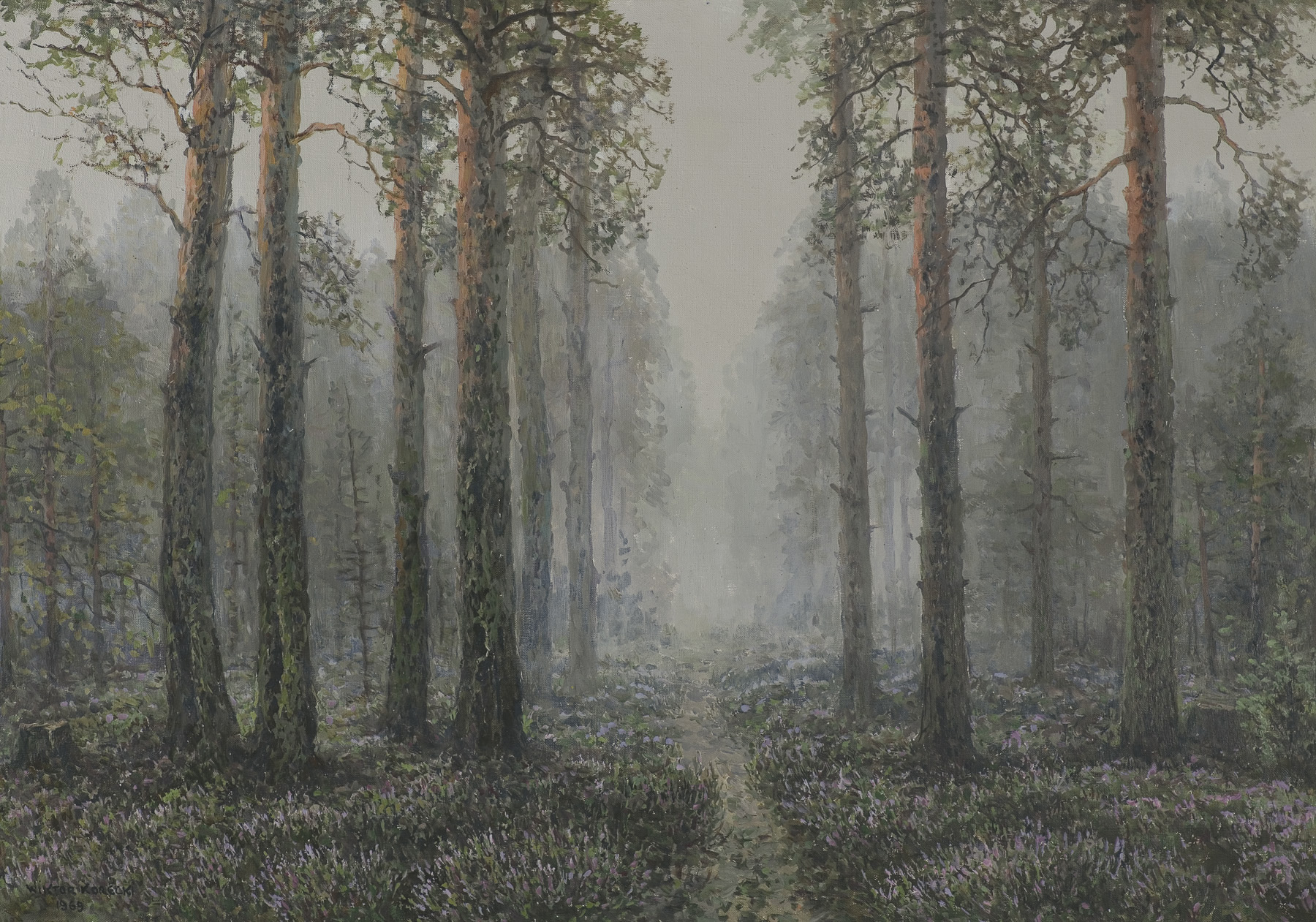 Wiktor Korecki (Kamieniec Podolski 1890 - Komorów k. Warszawy 1980) - malarz pejzażysta - gimnazjum ukończył w Kijowie, tam też studiował w Szkole Rysunkowej Aleksandra Muraszki. Po studiach wrócił do Kamieńca Podolskiego, skąd w roku 1921 wyjechał do Warszawy. Tu miał pracownię na rogu ulic Tamki i Cichej. Niestety zgromadzone tam obrazy spłonęły w czasie powstania 1944 roku. Po powstaniu artysta przebywał w obozie w Pruszkowie skąd trafił do obozu pracy w Lipsku. Do kraju powrócił w roku 1946 i zamieszkał w Komorowie pod Warszawą, a później w Milanówku. Jego nastrojowe krajobrazy emanujące spokojem i pogodą cieszyły się zawsze dużą popularnością. Korecki najczęściej malował pejzaże zimowe z motywem leśnej drogi i strumienia wijącego się wśród śniegów, a obok nich także wiosenne, letnie czy jesienne widoki z Mazowsza.