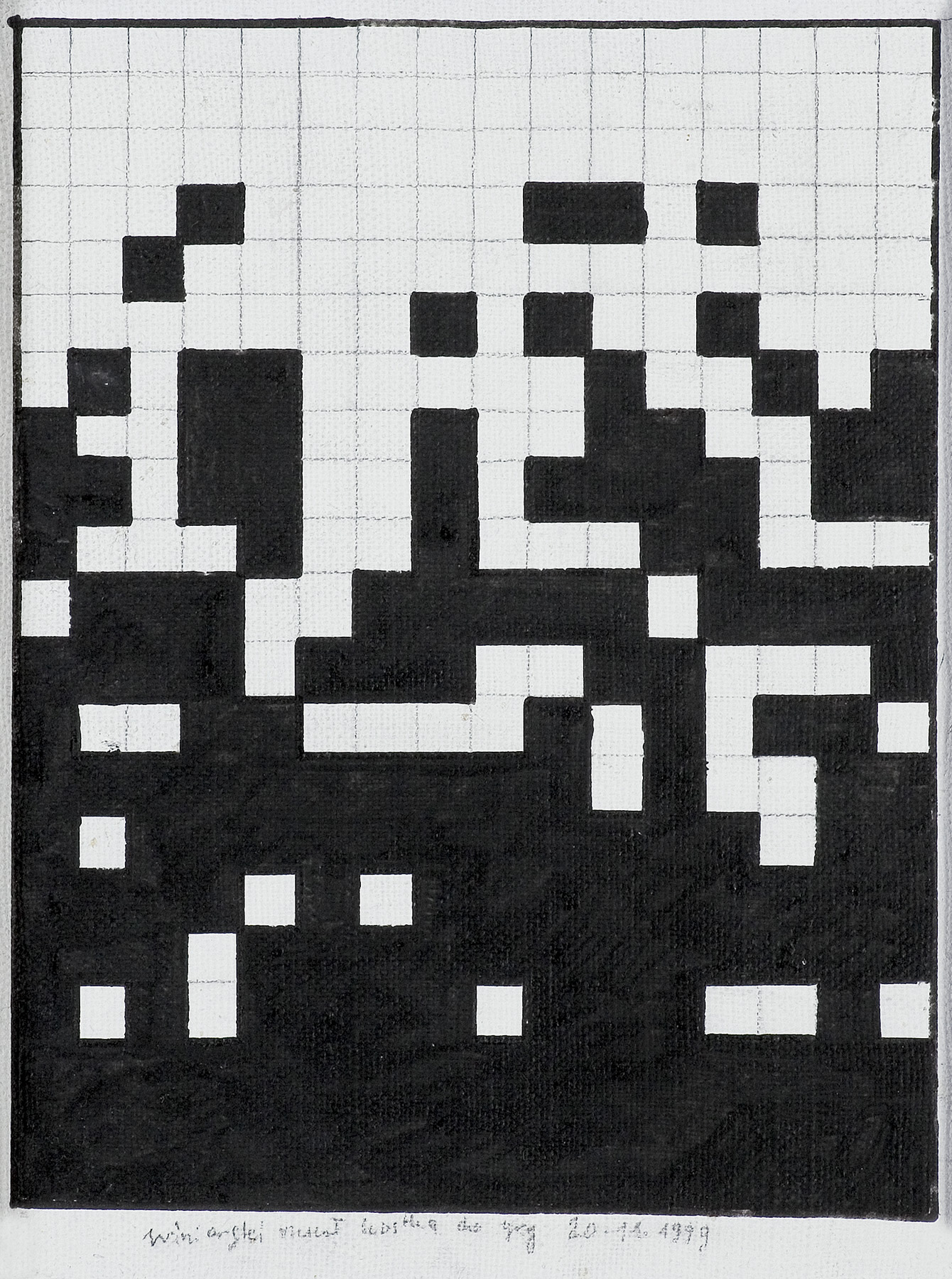 Ryszard Winiarski (Lwów 1936 - Warszawa 2006) ukończył w 1959 Politechnikę Warszawską i podjął studia malarskie w ASP w Warszawie (1960-1966). Pod koniec studiów, w 1965 sformułował własny program artystyczny i zrealizował pierwsze prace z serii pt. „Próby wizualnej prezentacji rozkładów statystycznych“. Otrzymał za nie I nagrodę na Sympozjum Artystów i Naukowców w Puławach w 1966. Jako stałe moduły prac przyjął kwadraty w kolorach czerni i bieli, których kolejnością i rozmieszczeniem rządzi przypadek - rzut kostką do gry, losowanie lub wybór liczb przypadkowych. W 1970 wprowadził do swych prac trzeci wymiar w formie obrazów przestrzennych lub jako iluzję przestrzeni uzyskaną przez wykreślanie perspektywy linearnej. W 1971 powstały pierwsze obrazy z wmontowanymi lustrami. Od 1972 artysta aranżował też „gry“ z udziałem widzów, którzy stosując jego środki i metodę wypełniali płaszczyznę czy pomieszczenie własną „wystawą“. Od ok. 1983 Winiarski włączył do swych prac elementy znaczeniowe, symboliczne i odwołujące się do emocji, jak kształt krzyża, naturalne materiały i zabiegi na nich, np. gięcie (instalacje: Geometria w stanie napięcia, 1984, Czarny kwadrat czyli fruwająca geometria, 1984, Hommage dla Henryka Stażewskiego, 1989). Równolegle artysta od 1960 uprawiał scenografię teatralną, będąc autorem kilkudziesięciu realizacji w tej dziedzinie w teatrach całej Polski. Uczestniczył w wielkiej liczbie wystaw w Polsce i za granicą, w tym: Biennale w Sao Paulo 1969, I i II Biennale des Konstruktivismus, Norymberga 1969 i 1971, Konstrukcja w procesie, Łódź 1981 i Monachium 1985. Zmarł 4 grudnia 2006 w Warszawie.