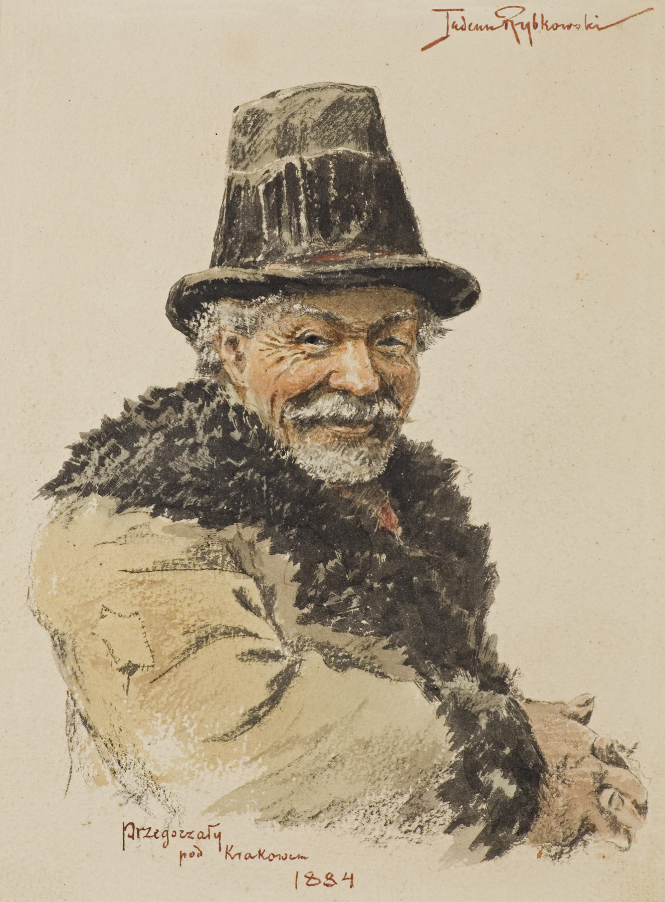 Tadeusz Rybkowski (Kielce 1848 - Lwów 1926) Tadeusz Rybkowski studia malarskie rozpoczął pod kierunkiem Władysława Łuszczkiewicza w krakowskiej Szkole Sztuk Pięknych. Następnie, w latach 1875-1877, kształcił się w Wiedniu - w Akademii Sztuk Pięknych oraz w pracowniach Leopolda Loefflera i Hansa Makarta. W Wiedniu pozostał na dłużej, wyjeżdżając stamtąd w podróże do Włoch, Monachium, Drezna i Berlina. W roku 1893 osiadł na stałe we Lwowie; założył prywatną szkołę malarstwa dla kobiet, wykładał też w Państwowej Szkole Przemysłowej. Malował olejno i akwarelą, głównie sceny rodzajowe - polowania, targi, jarmarki. Interesował się folklorem huculskim, zajmował się malarstwem ściennym, wykonywał ilustracje do czasopism.