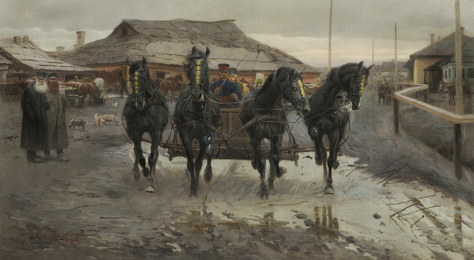 Motyw galicyjskiej wsi, jej mieszkańców, zaprzęgów i koni, a także realizm tego przedstawienia, jego sprawdzalna codz...