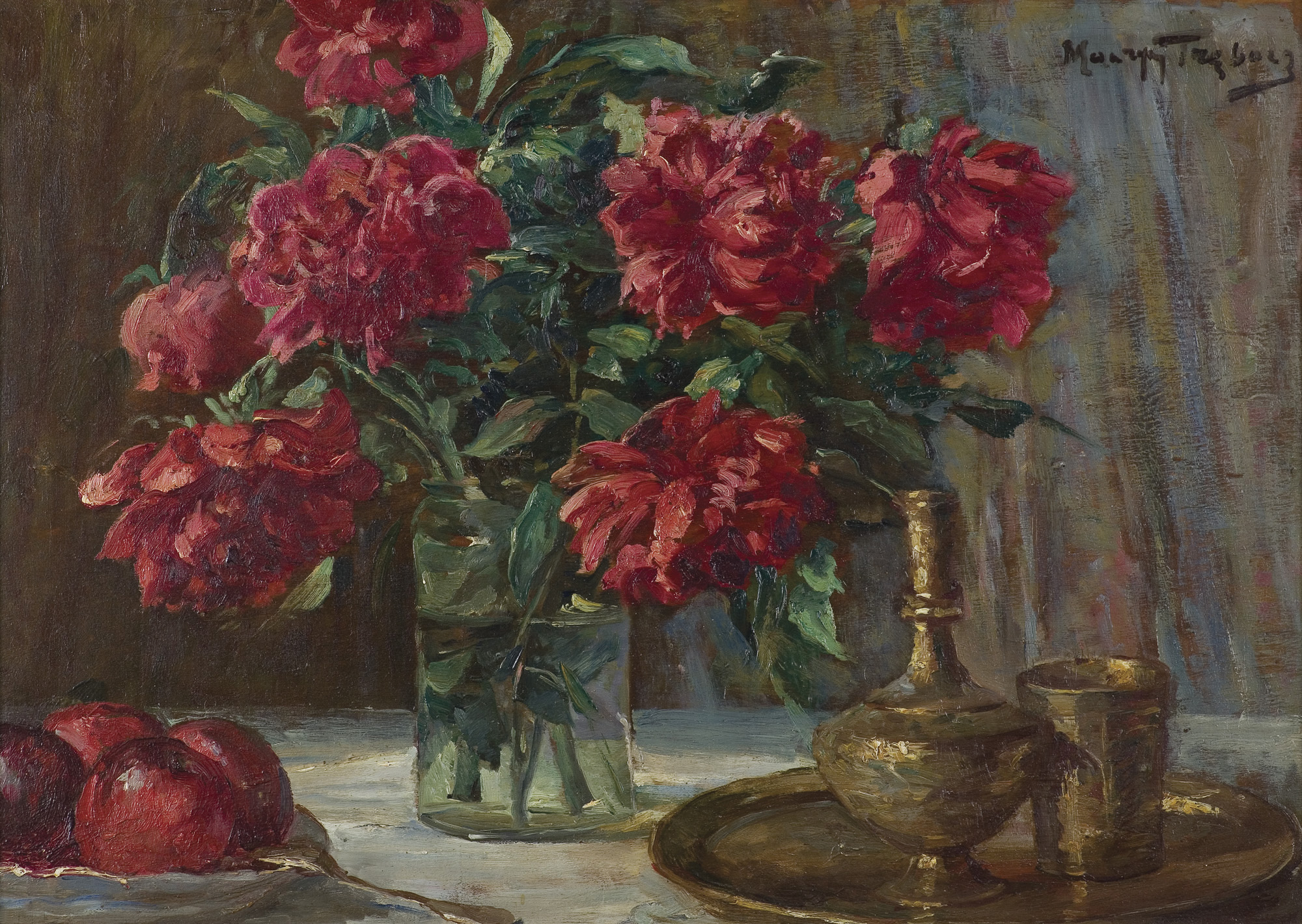 Maurycy Trębacz w okresie przełomu XIX i XX wieku był jednym z najpopularniejszych malarzy żydowskich. Kształcił się u Wojciecha Gersona i Antoniego Kamińskiego w warszawskiej Klasie Rysunkowej, oraz Władysława Łuszczkiewicza i Jana Matejki w krakowskiej Szkole Sztuk Pięknych. Następnie, od 1883 studiował w Akademii w Monachium pod kierunkiem Aleksandra Wagnera i Otto Seitza, a w l. 1889-1890 w paryskiej Académie Colarossi. Studia ukończył ze srebrnym medalem. Swoje obrazy wystawiał od roku 1884, odnosząc sukcesy na wystawach w kraju i za granicą - w Monachium, Paryżu (1889 - brązowy medal), w Chicago (1894 - złoty medal). W 1894 osiadł w Warszawie, skąd w 1909 przeniósł się na stałe do Łodzi, gdzie aż do roku 1939 prowadził własną szkołę malarską. Malował sceny rodzajowe, obrazy o tematyce żydowskiej, pejzaże i liczne portrety. Twórczość artysty przypomniała ostatnio duża wystawa jego prac zorganizowana w Żydowskim Instytucie Historycznym w Warszawie i Muzeum Historii Miasta Łodzi.