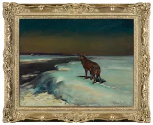 Alfred Wierusz-Kowalski (Suwałki 1849 – Monachium 1915) - jeden z najwybitniejszych polskich malarzy tzw. szkoły monachijskiej był, obok Józefa Brandta i Władysława Czachórskiego, także najpopularniejszym z polskich artystów osiadłych i stale działających w Monachium. Zamieszkał tam w roku 1873, już po studiach w Warszawie i w Dreźnie. Przez rok uczył się jeszcze w monachijskiej Akademii Sztuk Pięknych pod kierunkiem Alexandra Wagnera, a następnie przeniósł się do prywatnej pracowni Brandta. Uznanie krytyki i publiczności zdobył wcześnie; jego obrazy, odznaczane medalami na wystawach były rozchwytywane przez kolekcjonerów i niemieckich handlarzy. W roku 1890 został honorowym profesorem Akademii monachijskiej. Malował sceny rodzajowe i rodzajowo-historyczne z motywami jeźdźców, rycerzy, myśliwych, koni, wilków i śniegów. Po podróży do Afryki w roku 1903 podejmował też tematy orientalne. W polskich zbiorach muzealnych znalazło się stosunkowo niewiele prac artysty – jego obrazy sprzedawane głównie na rynku niemieckim w większej liczbie trafiały do kolekcji prywatnych, głównie w Niemczech i Stanach Zjednoczonych. Obecne często pojawiają się i na polskim rynku sztuki, zawsze budząc zainteresowanie kolekcjonerów.
