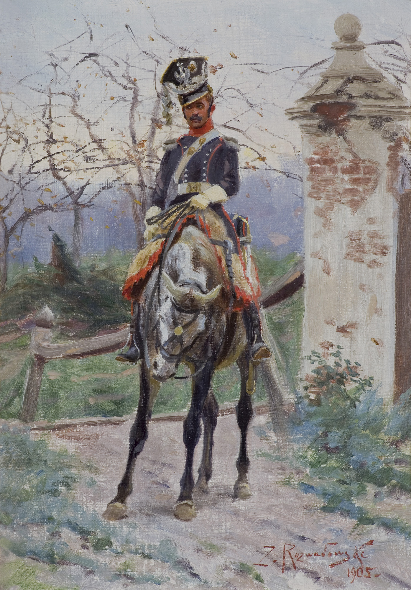 Zygmunt Rozwadowski (Lwów 1870 - Zakopane 1950) studiował od 1883 do 1890 w krakowskiej Szkole Sztuk Pięknych, m.in. u Jana Matejki, a w latach 1891-1893 w Monachium, w prywatnej szkole Antona Ažbégo. Jeszcze jako student debiutował w TPSP w Krakowie, wystawiając pod nazwiskiem Jordan. Po studiach mieszkał we Lwowie – nauczał w Szkole Przemysłowej, wiele wystawiał, współpracował przy dekoracji sal lwowskiego teatru. W czasie I wojny światowej walczył w Legionach. Po II wojnie zamieszkał w Zakopanem. Malował przede wszystkim obrazy batalistyczne z czasów napoleońskich i powstania listopadowego, sceny rodzajowe z motywami koni, rzadziej portrety i pejzaże. Uczestniczył w malowaniu popularnych panoram - Racławic z Janem Styką i Wojciechem Kossakiem, Golgoty, Panoramy siedmiogrodzkiej i Męczeństwa Chrześcijan ze Styką oraz Bitwy pod piramidami z Kossakiem. Wspólnie z Tadeuszem Popielem namalował dioramy Branki tatarskie i Bitwę pod Grunwaldem.