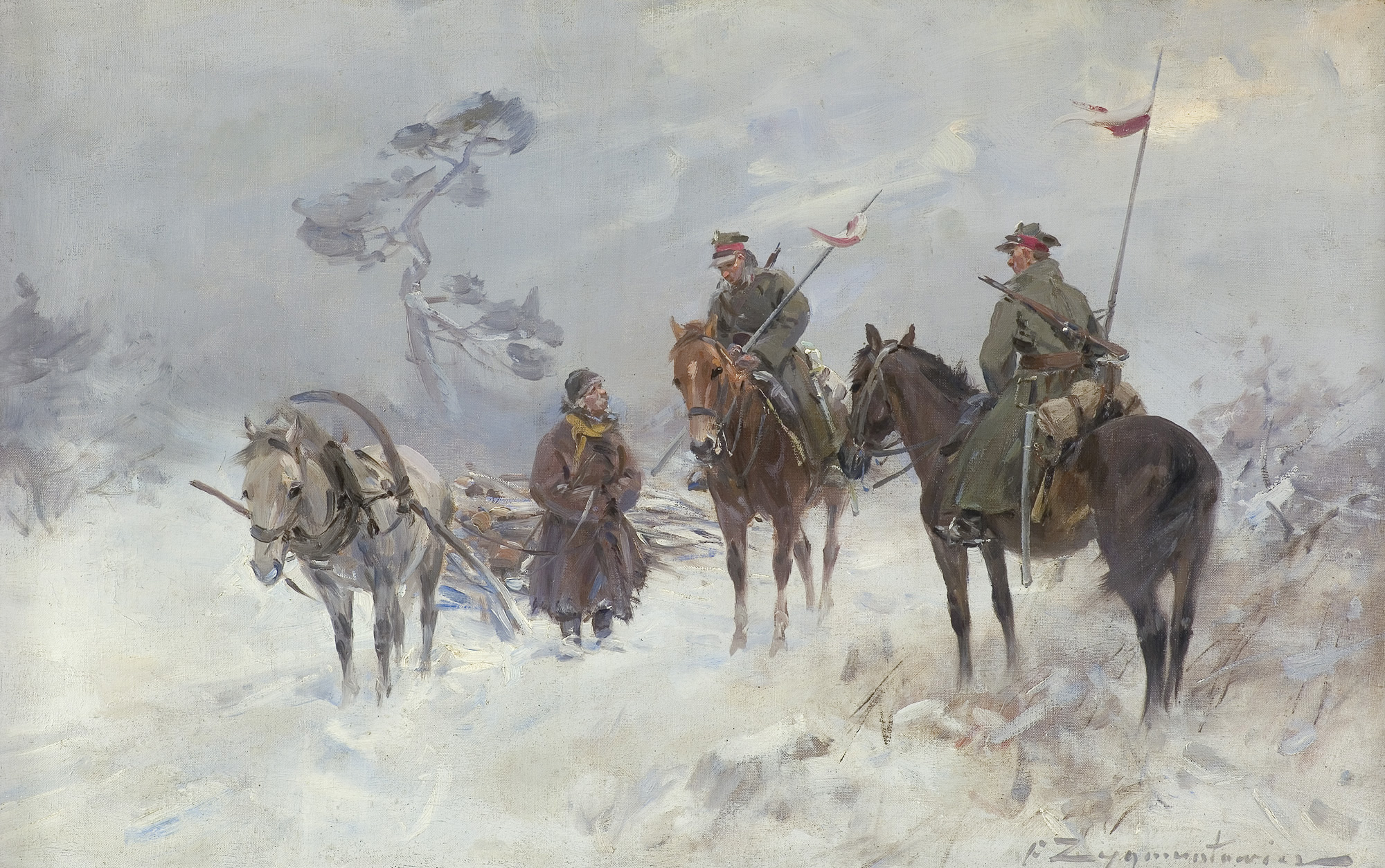 Czesław Wasilewski (ok. 1875 - Warszawa/ Łódź 1946?47) to popularny w okresie międzywojennym warszawski malarz, autor obrazów inspirowanych płótnami Kossaka, Brandta, Chełmońskiego, Wierusza-Kowalskiego czy Fałata. Był samoukiem; wprawdzie w 1911 zapisał się do warszawskiej Szkoły Sztuk Pięknych, ale o jego studiach nic bliższego nie wiadomo. Być może uczęszczał tam (1913-1917) do pracowni Wojciecha Kossaka, dla którego później, na początku lat dwudziestych, przygotowywał podmalówki do obrazów. Uczestniczył w wystawie w Lublinie (1922), wystawiał na Salonach warszawskiej Zachęty (1925,1926, 1927), w Katowicach (1926), Częstochowie (1927), Gdyni (1929), Kaliszu (1931), Poznaniu (1928, 1931). Malował przede wszystkim liczne zaprzęgi, sanny, wyjazdy na polowania, wypadki w podróży, ułanów na patrolu, łosie, sarny i dziki w lesie. Tworzył także nastrojowe pejzaże, wyraźnie inspirowane malarstwem J. Chełmońskiego Rzadziej malował także kwiaty i martwe natury. Utożsamiany z malarzem o nazwisku „Zygmuntowicz”, którego prace pojawiały się na rynku sztuki od trzydziestych lat XX wieku. Stawiany przed tym nazwiskiem inicjał I. lub F., sugerować może imię Ignacy lub Franciszek. Sylwetkę malarza bliżej omówił S. Bołdok w artykule Malarz o dwóch nazwiskach (Art and Business 1992, nr 7-8, s. 48-49).