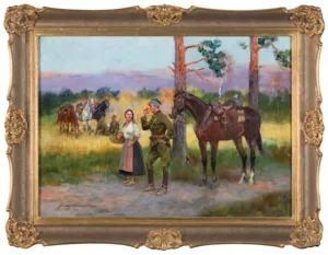 Jerzy Kossak (Kraków 1886 - Kraków 1955)- syn Wojciecha, wnuk Juliusza Kossaków - od wczesnego dzieciństwa malował pod kierunkiem ojca i dziadka. Kontynuator i naśladowca ich sztuki tworzył sceny batalistyczne, historyczne i rodzajowe z wszechobecnym motywem konia. Malował obrazy z powstania listopadowego, wojen napoleońskich oraz wiele scen z wojny 1920 roku. Najbardziej znaną jego kompozycją tego rodzaju był Cud nad Wisłą. Malował też liczne Pogonie i Pościgi ułanów za kozakami, Napady wilków, Polowania i Wesela. Tematyka tych prac sprawia, że stale cieszą się zainteresowaniem zbieraczy i publiczności, zawsze tłumnie odwiedzającej wystawy malarstwa Kossaków.